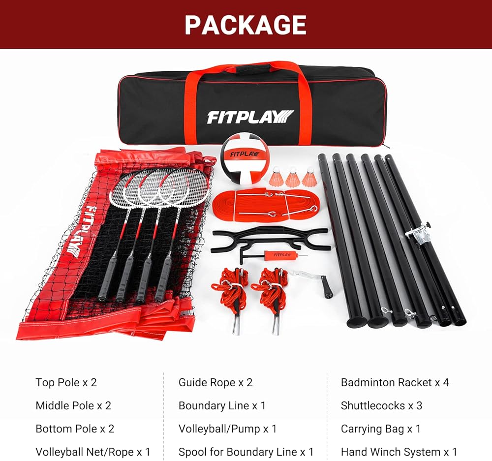 🏐【سهلة التجميع والنقل】يمكن تجميع مجموعة كرة الطائرة وكرة الريشة وتفكيكها بسرعة في دقائق. تأتي مع حقيبة حمل، مما يجعل من السهل حمل مجموعة الكرة الطائرة إلى الشاطئ والحدائق الخارجية والمزيد.
