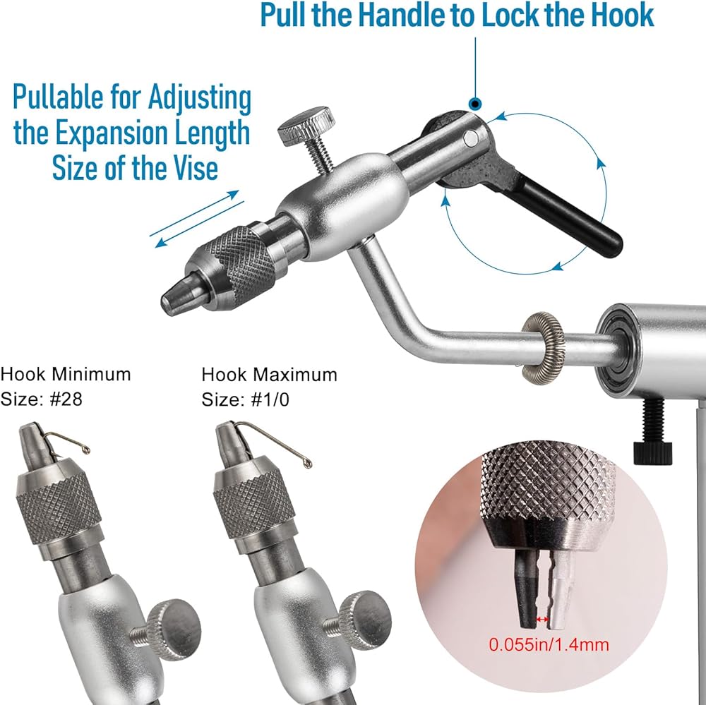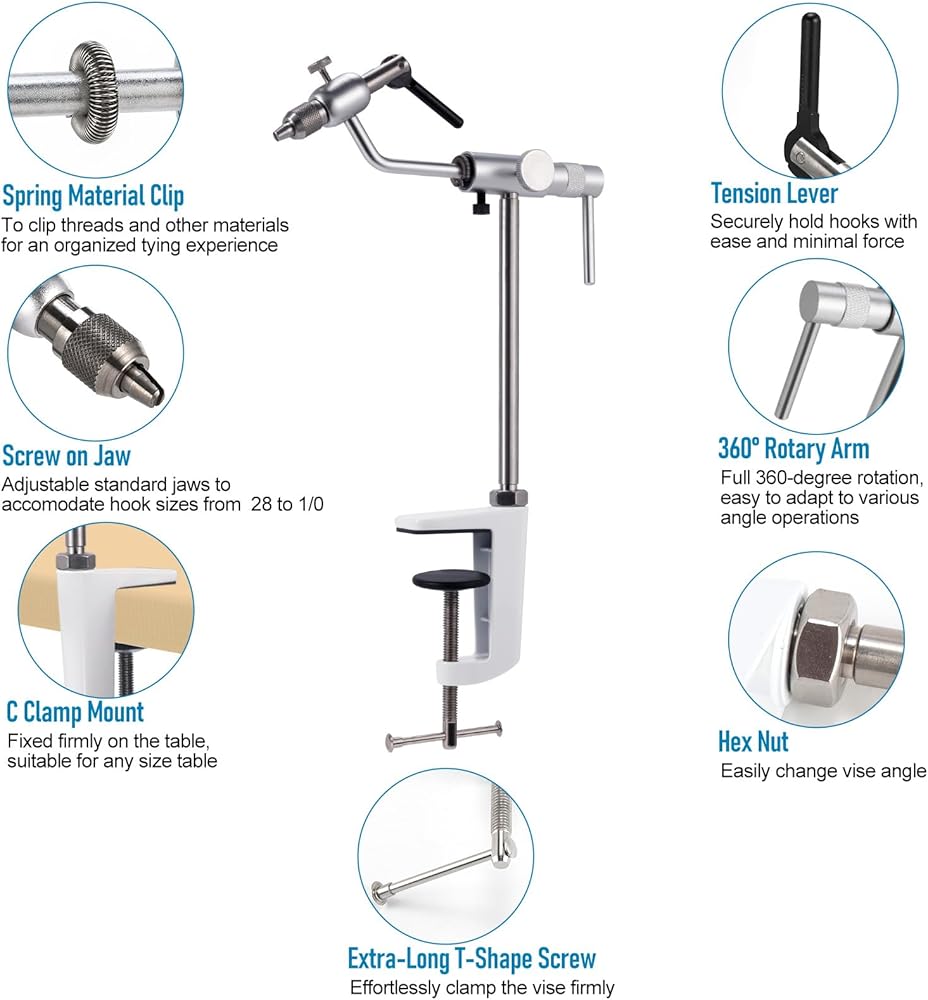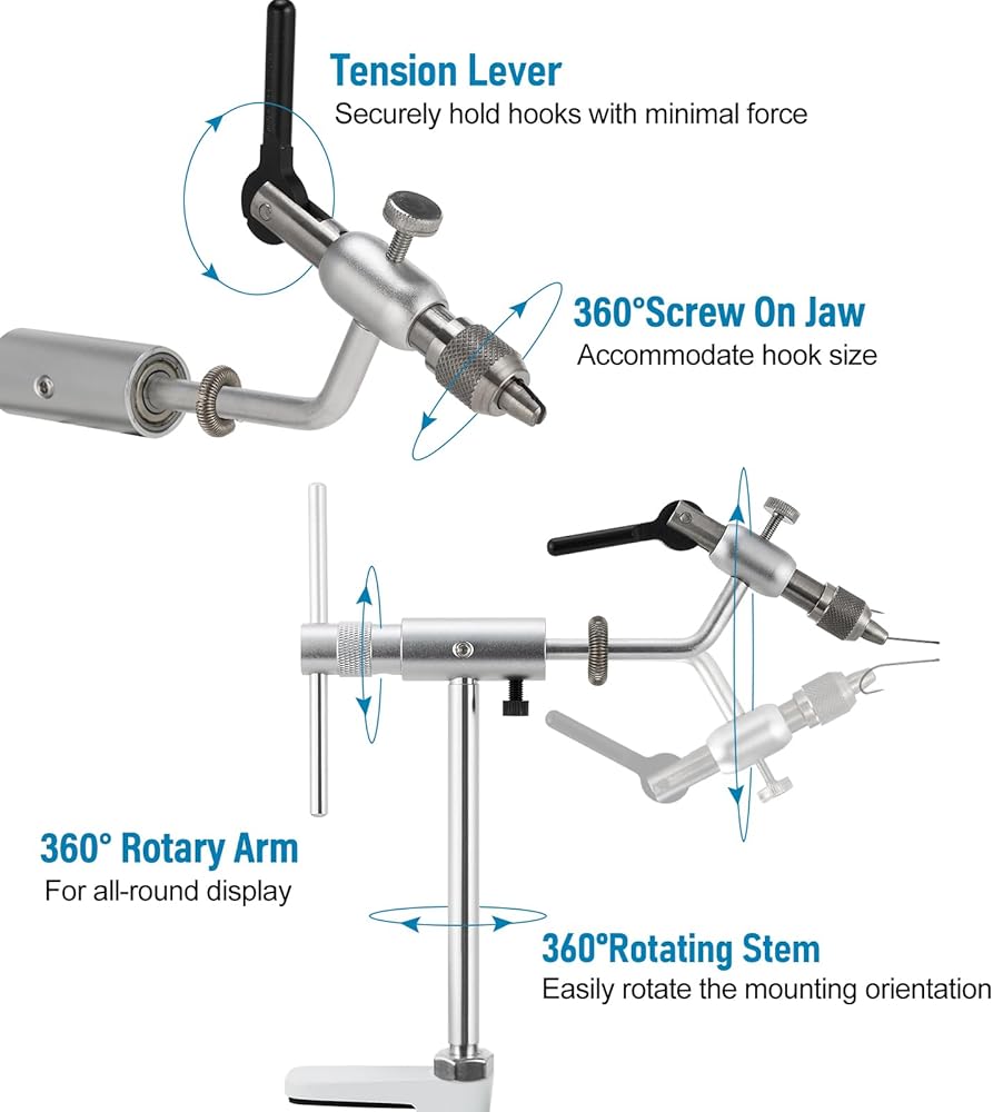 • ملزمة ربط الذبابة المتينة: تتميز ملزمة ربط الذبابة الدوارة Alwonder بجذع من الفولاذ المقاوم للصدأ، وفك 40Cr، وجسم دوار من سبائك الألومنيوم CNC ومشبك على شكل حرف C، وكلها تضمن عمر خدمة طويل مذهل لملزمة ربط الذبابة.