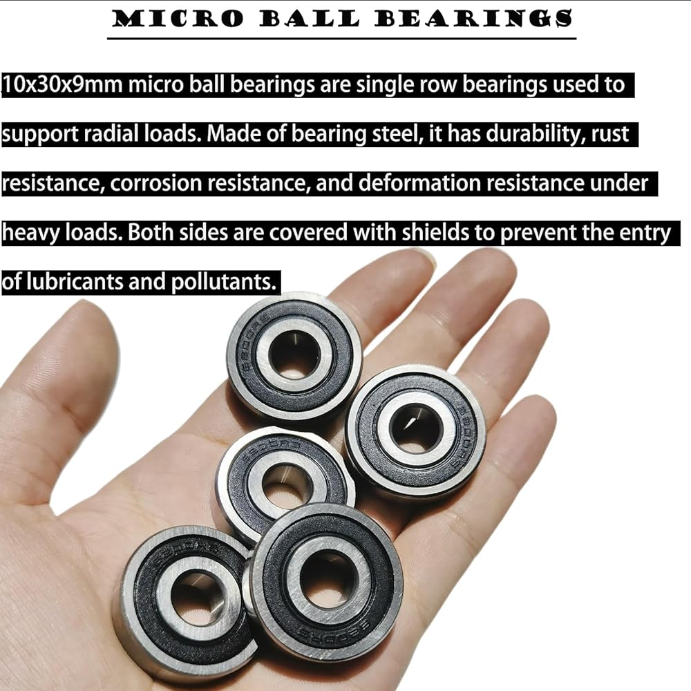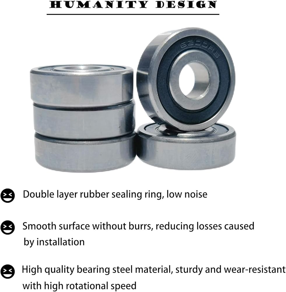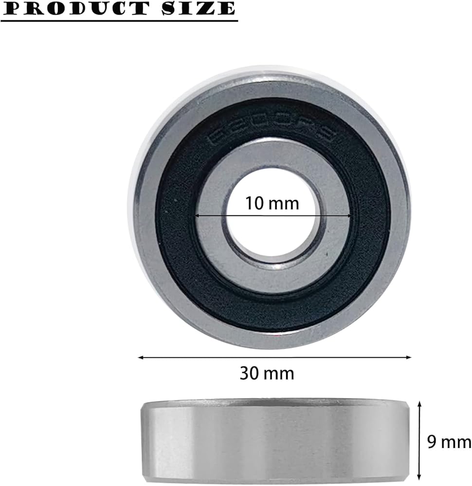 6200-2RS Deep Groove Bearing - Lubricated Beaing Steel Sealed Ball Bearing - 10x30x9 mm Bearings with Rubber Seal & High RPM Support