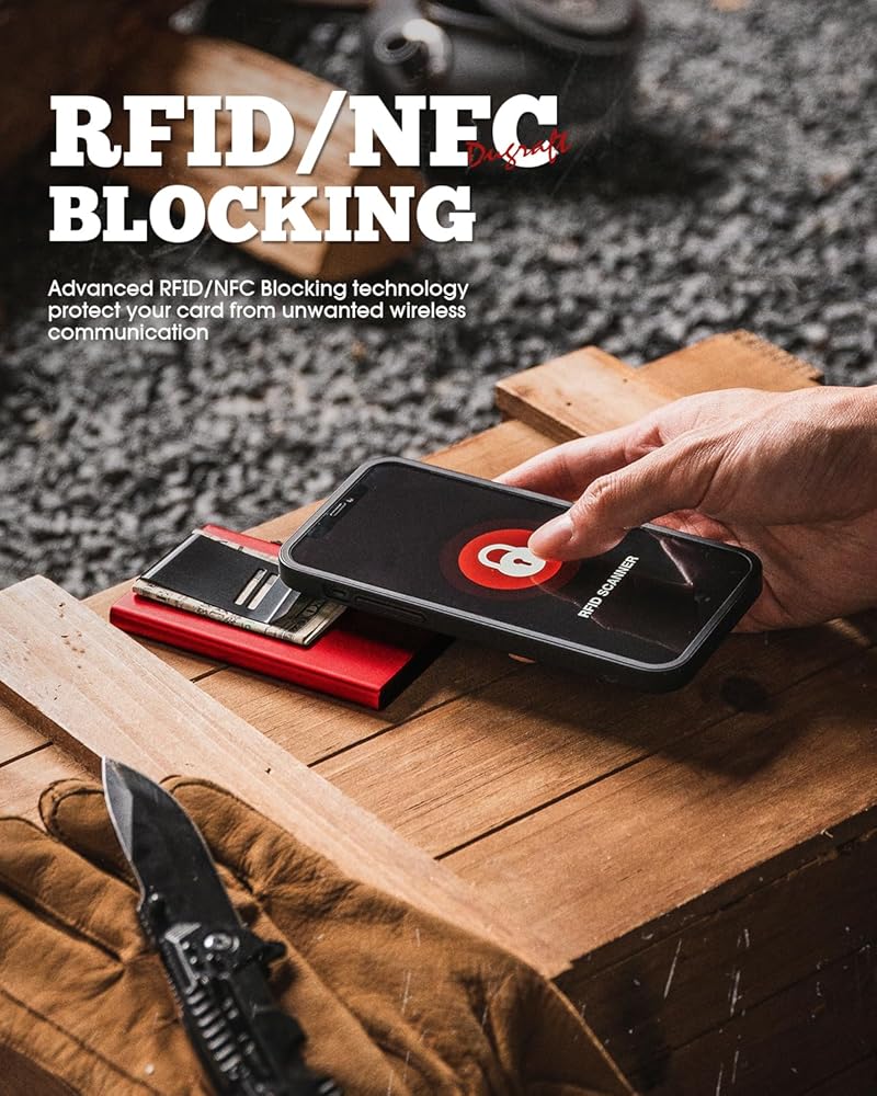 حماية RFID - يحمي الجراب المصنوع من الألومنيوم بطاقتك من الاتصالات اللاسلكية غير المرغوب فيها، مما يضمن سلامة ممتلكاتك الخاصة.