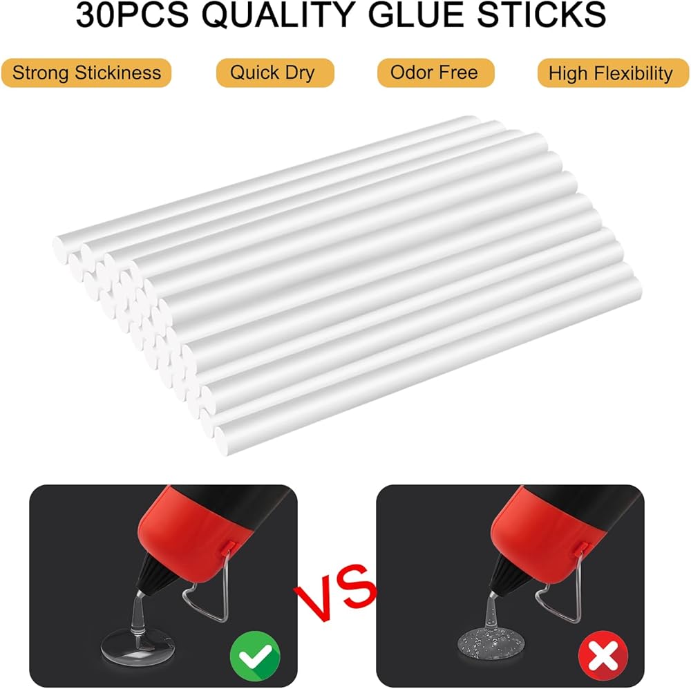 Multi Usage: The craft hot glue gun kit comes with 30pcs glue sticks and 1 pc glun gun. It is an ideal tool for various DIY, such as crafts & arts, home repair, making cards, Christmas decoration, gifts. It can work well with plastic, glass, paper, wood, cotton, fabric and other materials. A good gift for every DIY enthusiast.