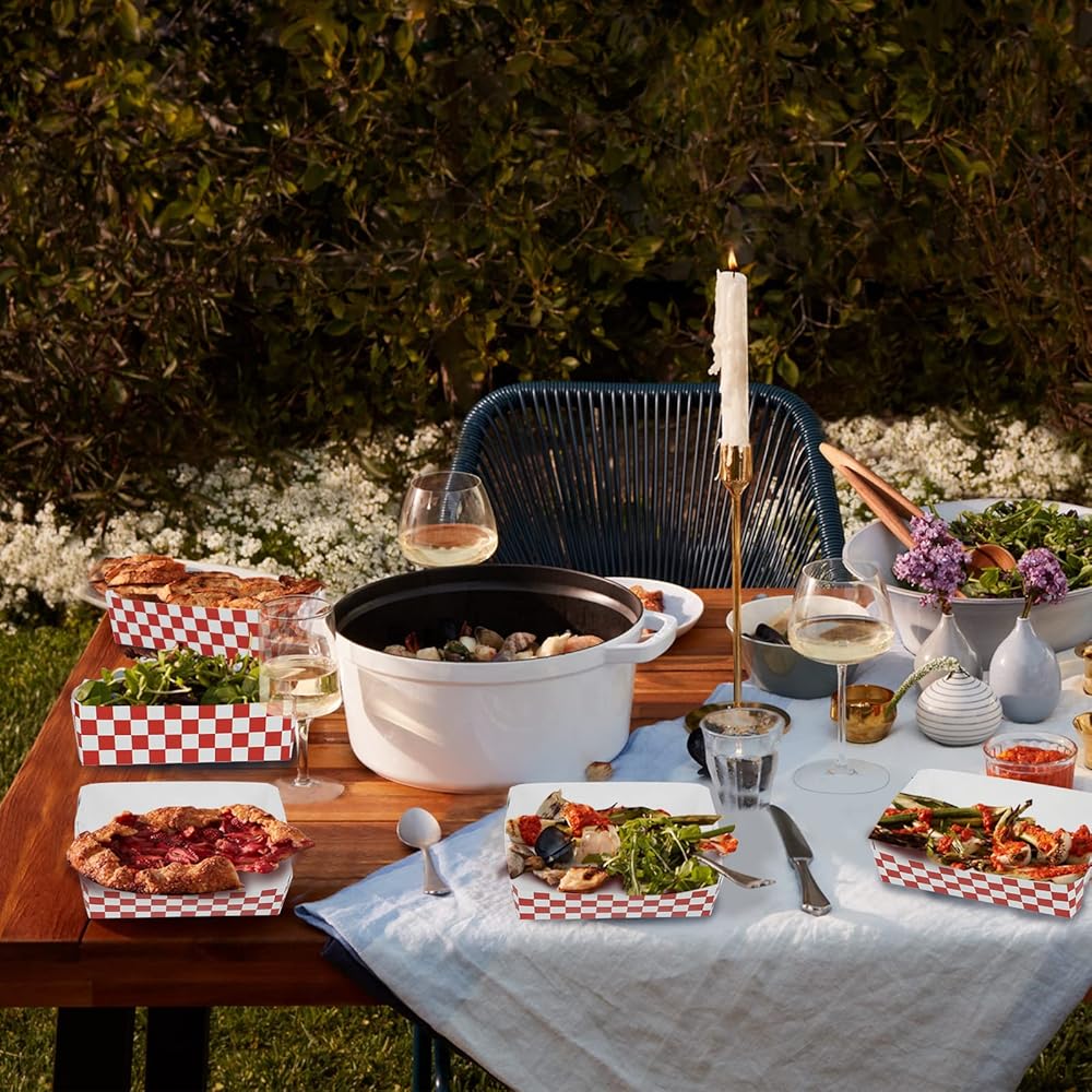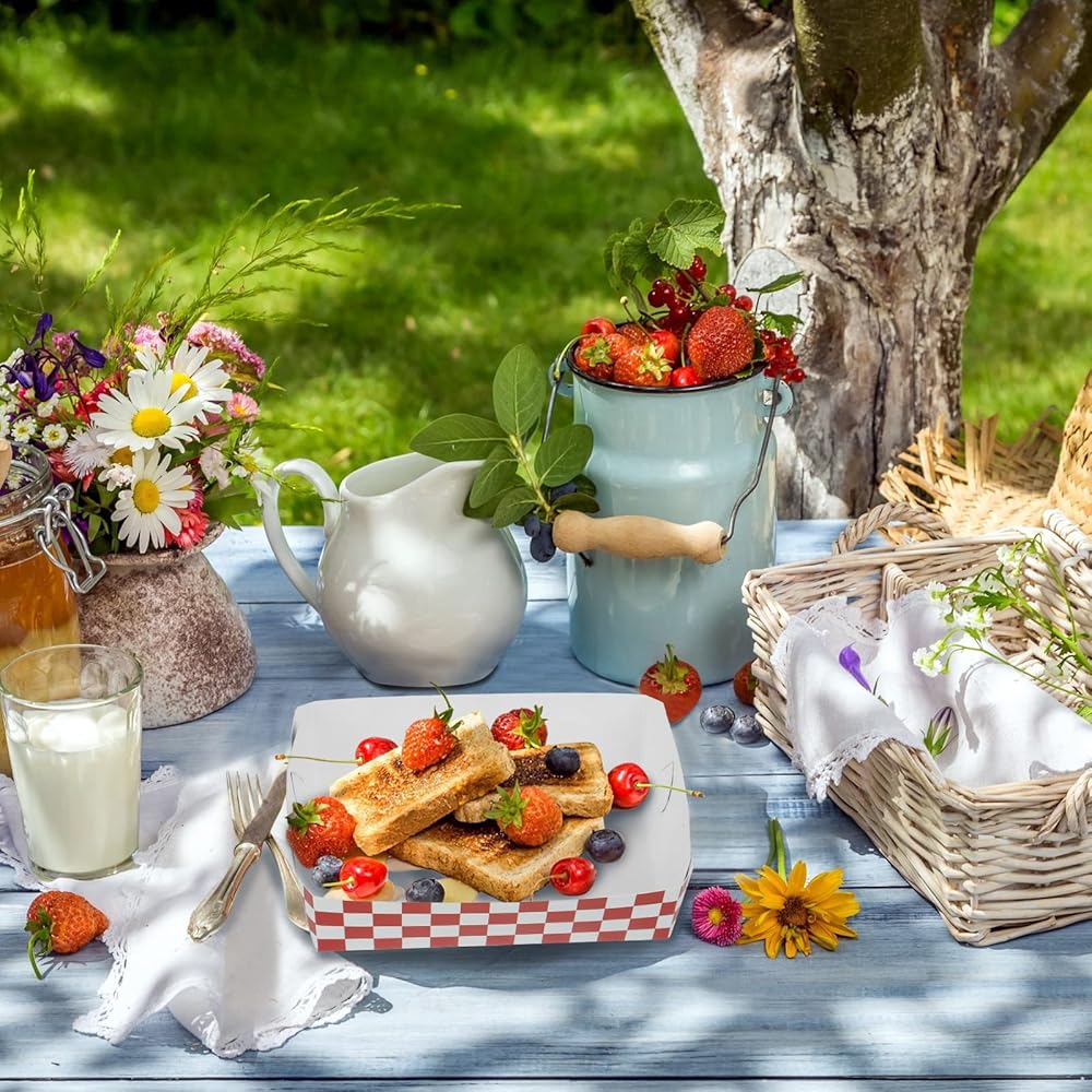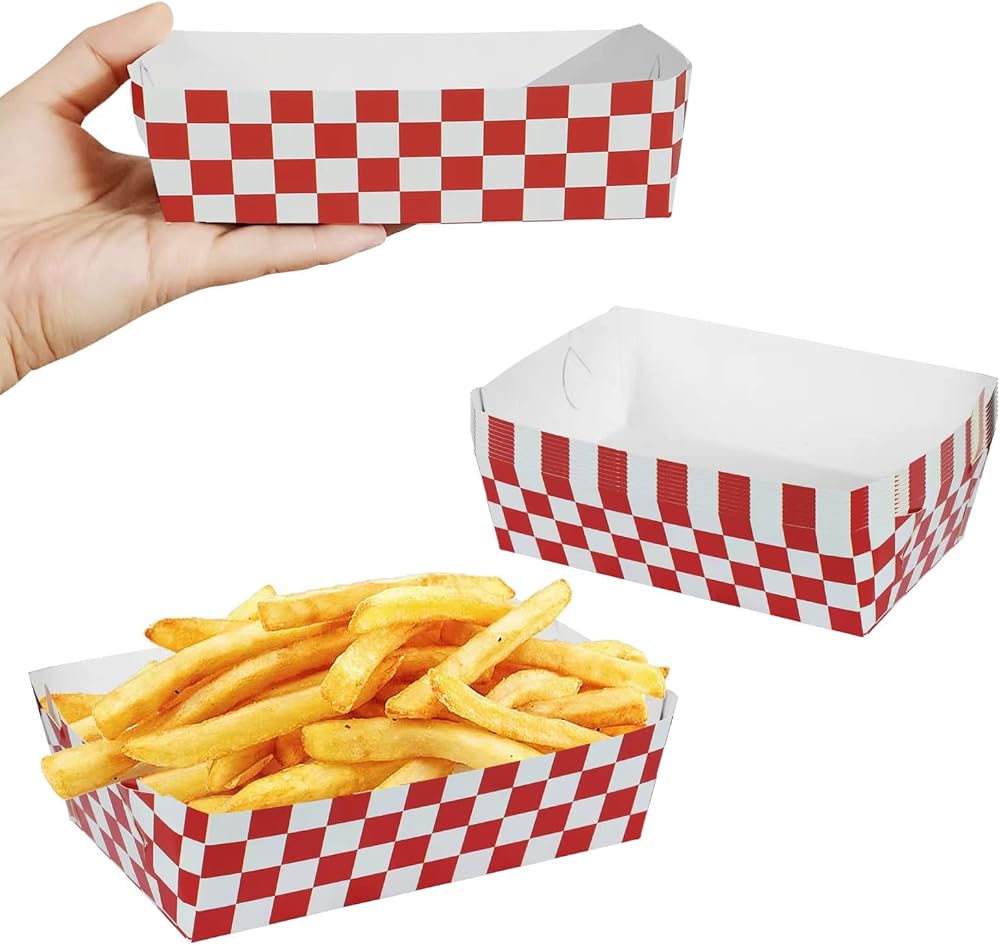 High quality material: the checkered red and white food trays are made of cardboard, and they are disposable, safe and grease resistant, which are suitable for carrying food conveniently at picnic party or birthday party
