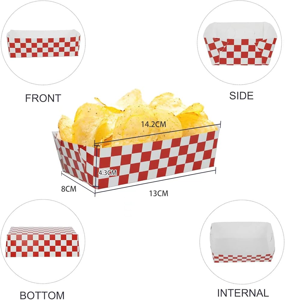 Appropriate size: the red and white checkered nacho trays measure approximately 2lb, perfect for saving space, enough size to hold hot dogs, popcorn, nachos and other fast food.