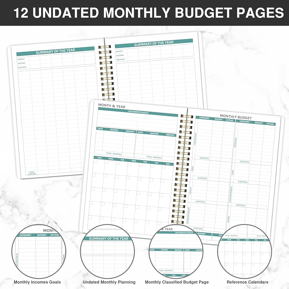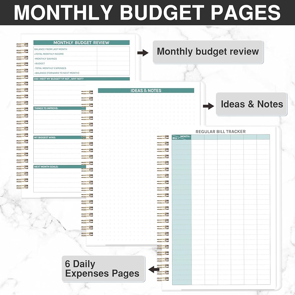 • تفاصيل متعددة الوظائف - مخطط مالي | ربط قوي بسلك مزدوج | إغلاق مرن | الجيب الداخلي | ملصقات مخطط الميزانية | غطاء شفاف مقاوم للماء | ورق سميك عالي الجودة | منظم الفاتورة | مخطط الميزانية الشهرية | البوصلة المالية الخاصة بك