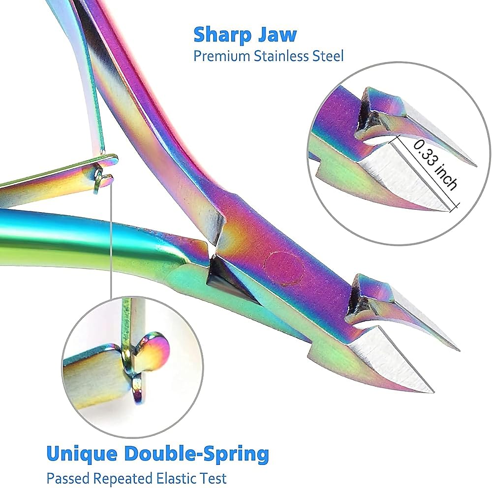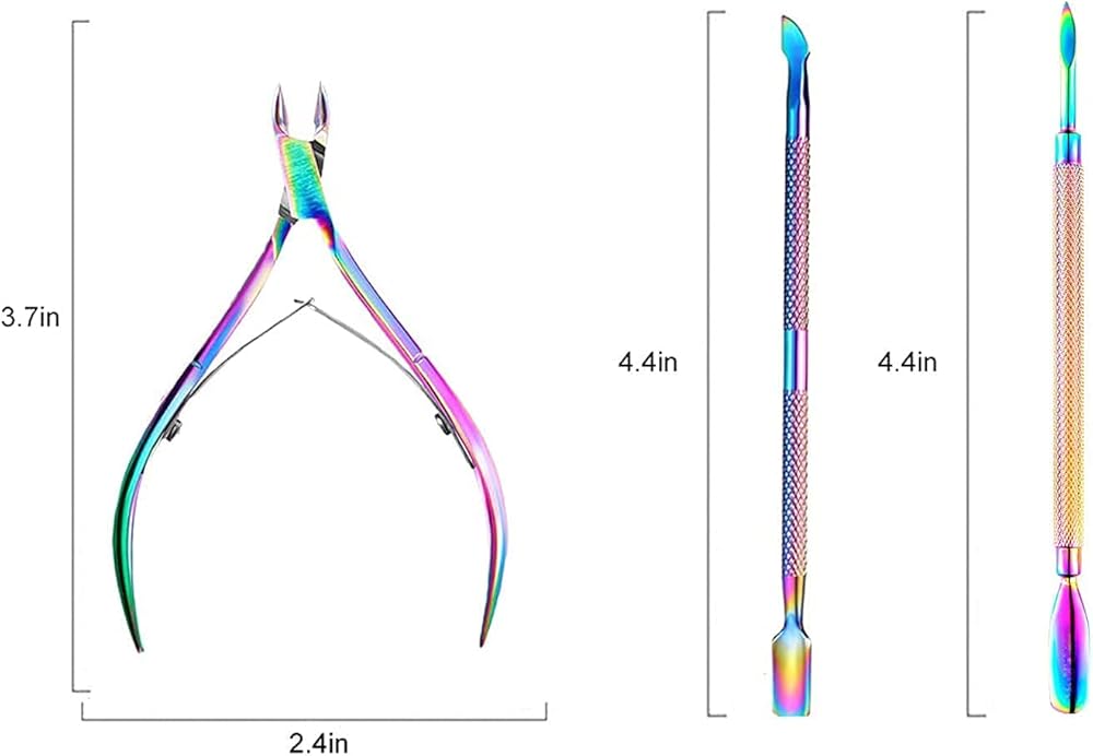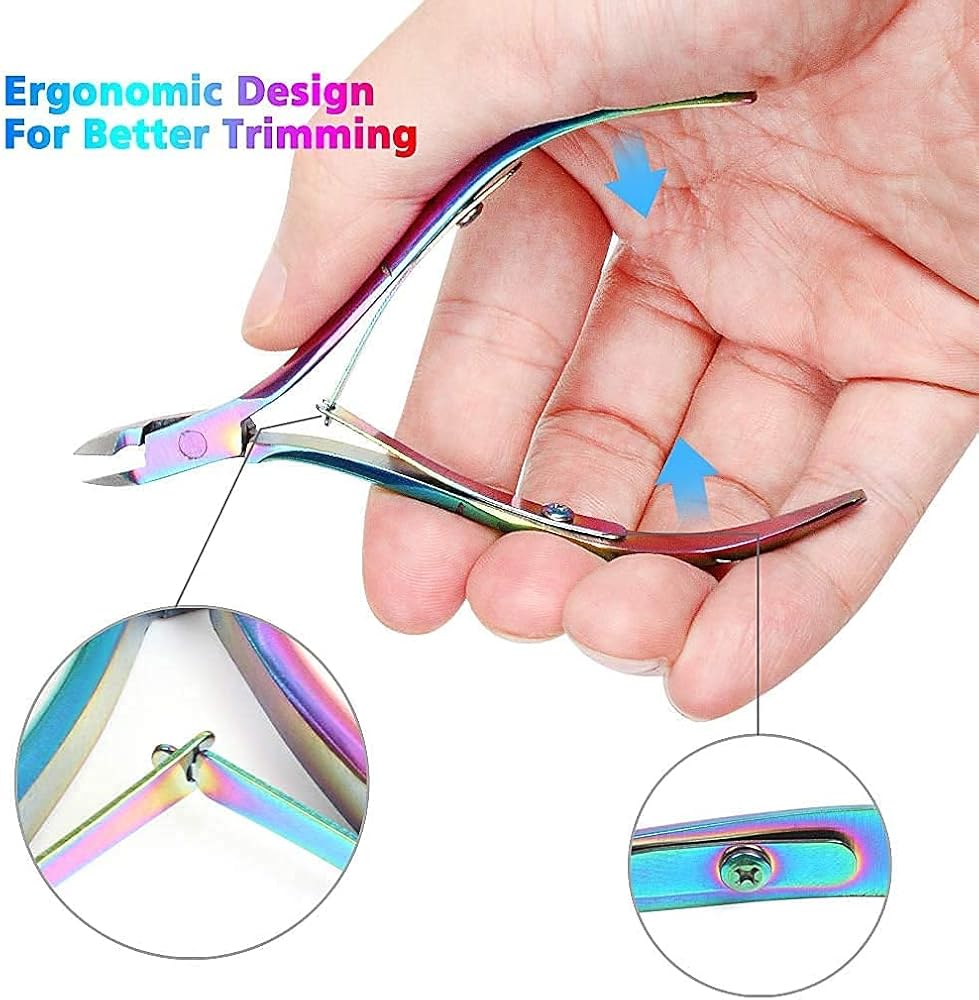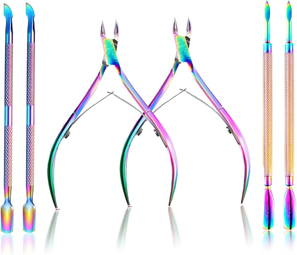 مجموعة تشذيب الجلد الميت من 6 قطع من Ruihao مع أداة دفع للزوائد اللحمية وقصاصة للزوائد اللحمية ومجموعة دافعة، أداة تشذيب الجلد الميت من الفولاذ المقاوم للصدأ للعناية بأظافر القدمين والأظافر - لون قوس قزح