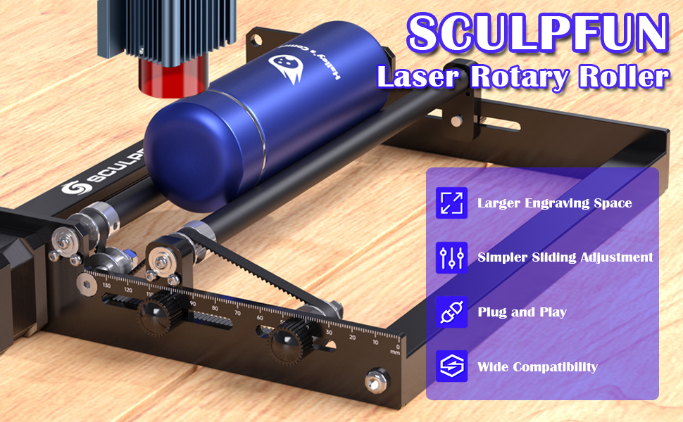• توافق واسع النطاق: وحدة النقش الدوارة SCULPFUN مناسبة لبرامج النقش المتعددة مثل Lightburn أو LaserGRBL، ويمكن استخدامها مباشرة، دون الحاجة إلى ضبط المعلمات. بالإضافة إلى ذلك، فهو متوافق مع 95% من نقش الليزر المكتبي الموجود في السوق.
