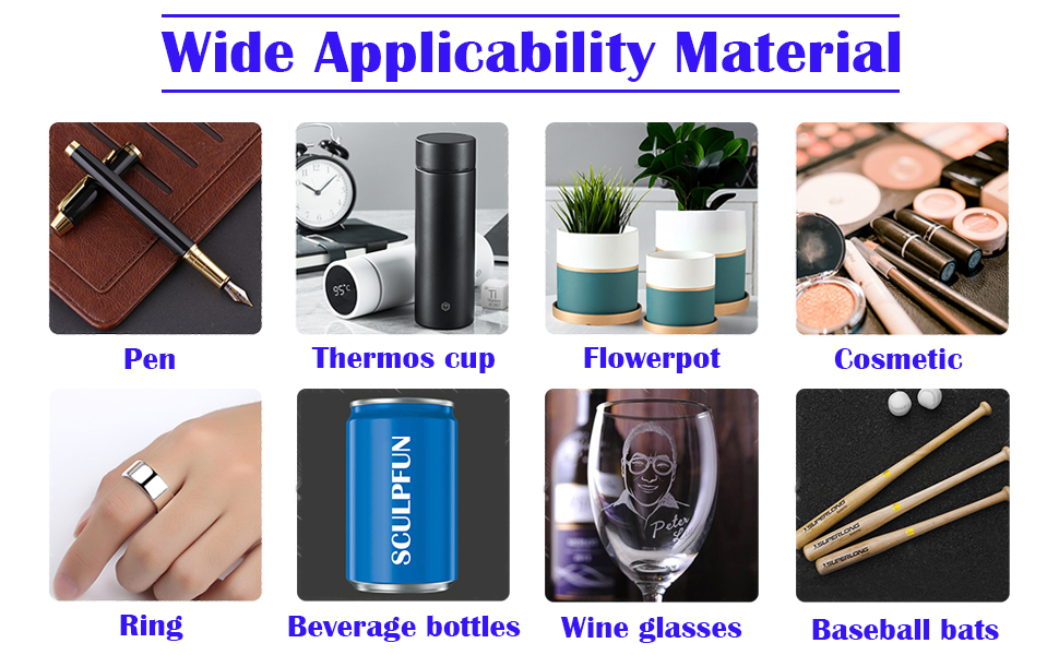 • 【نقش أصلي 100% عالي الدقة】تعتمد أسطوانة الليزر SCULPFUN على عمود مطاطي عالي الاحتكاك 70A لمنع الانزلاق، وقد تم حساب السرعة الخطية للسطح الدوار بدقة. قم بتوصيل كابل آلة النقش مباشرة لنقش الصورة الأصلية بنسبة 100%. لا تكبير أو تصغير الصورة.