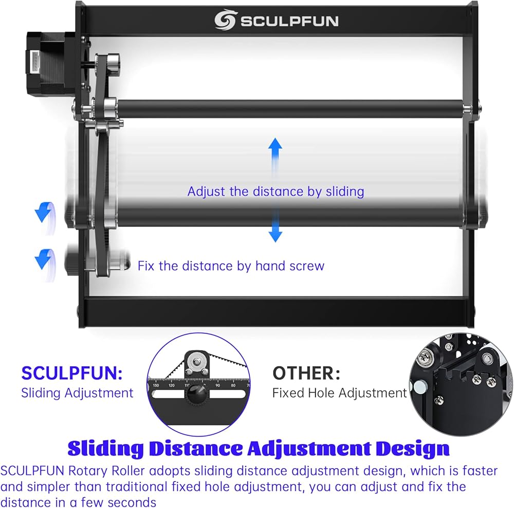 أسطوانة دوارة بالليزر من SCULPFUN، وحدة دوارة للمحور Y للنقش بالليزر، مرفق دوار بالليزر 360 درجة لنقش علب الأشياء الأسطوانية، متوافقة مع معظم آلات النقش بالليزر في السوق