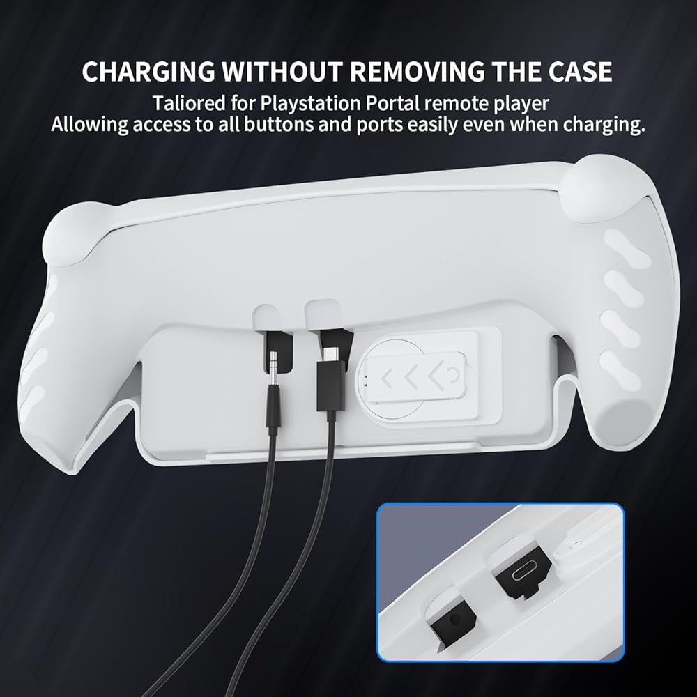 【الشحن دون إزالة الجراب】مصمم خصيصًا لمشغل Playstation Portal Remote Player، ويحتوي الغطاء الواقي على فتحات دقيقة للغاية لمنع حجب أي زجاجات، وفتحة تبديد الحرارة ومنفذ الشحن، مما يسمح بالوصول إلى جميع الأزرار والمنافذ بسهولة حتى عند الشحن.