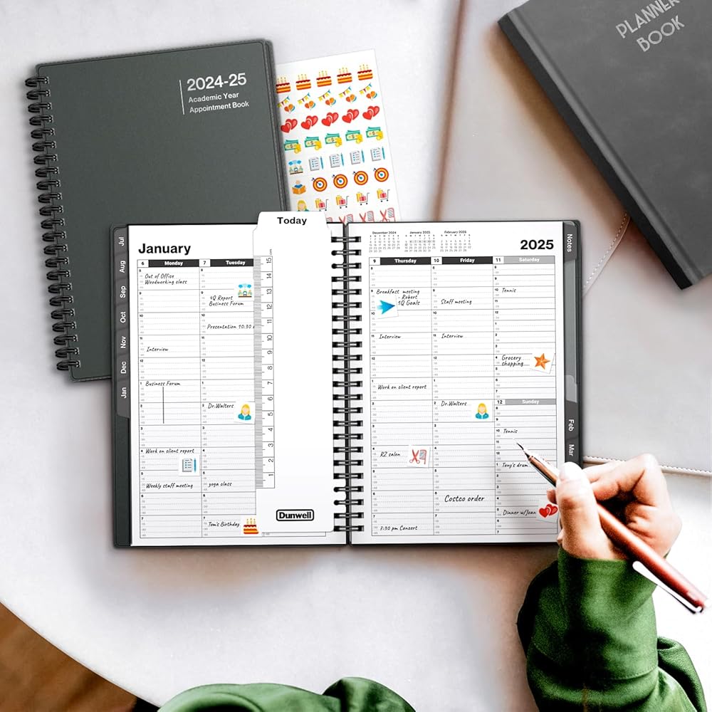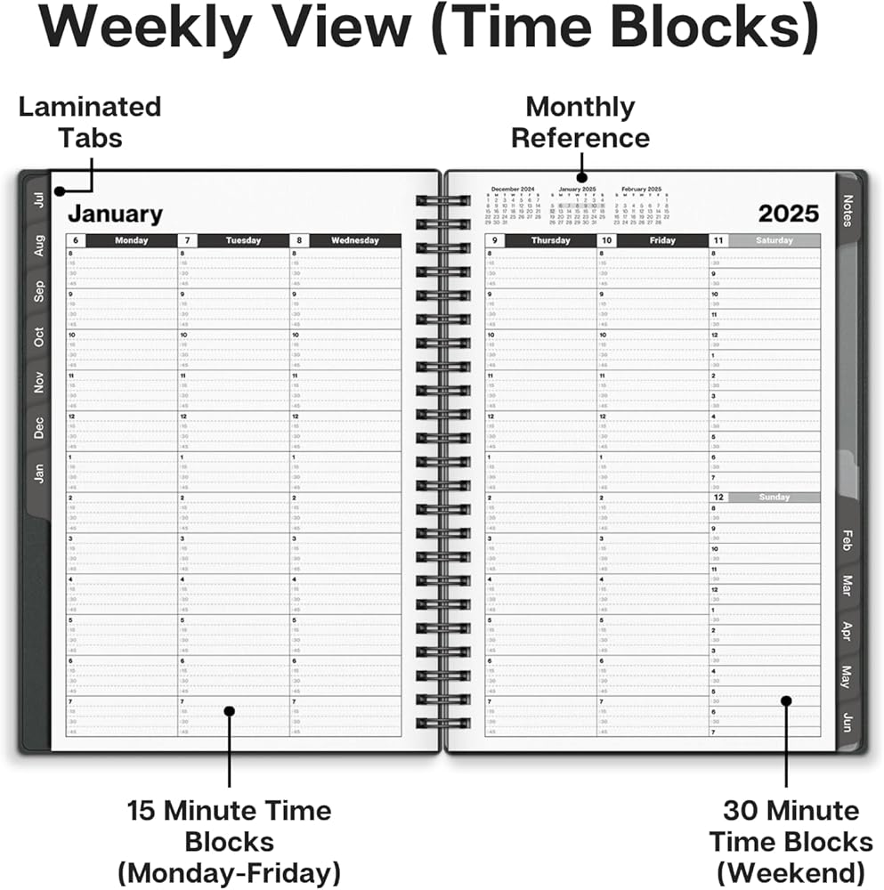 كتاب مواعيد صغير، 6 × 8-1/4 بوصة، العام الدراسي 24 25، استخدم من يوليو 2024 إلى يونيو 2025، كتيب جدول أعمال مؤرخ لتخطيط إدارة الوقت. حجم صغير. أسلوب احترافي للعمل أو الاستخدام الشخصي.