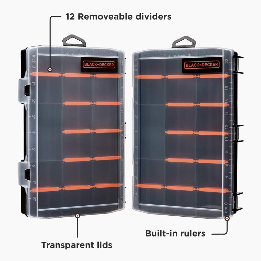 Get started on your projects faster with the beyond by BLACK+DECKER Tool Organizer. This pack of 2 cases features removable dividers with plenty of custom tool storage. Use it to store larger or smaller pieces and rearrange as needed. The clear lid makes it easy to find the screws or drill bits you need, and then measure them with the built-in ruler. These storage cases are the long-lasting storage solution for your tool kit.About beyond by BLACK+DECKER beyond by BLACK+DECKER curates tools for the DIYer and home improvement enthusiast. Make projects fun again with easy-to-use and efficient devices to tackle jobs of all sizes. Home, garden, and yard maintenance have never been this effortless.