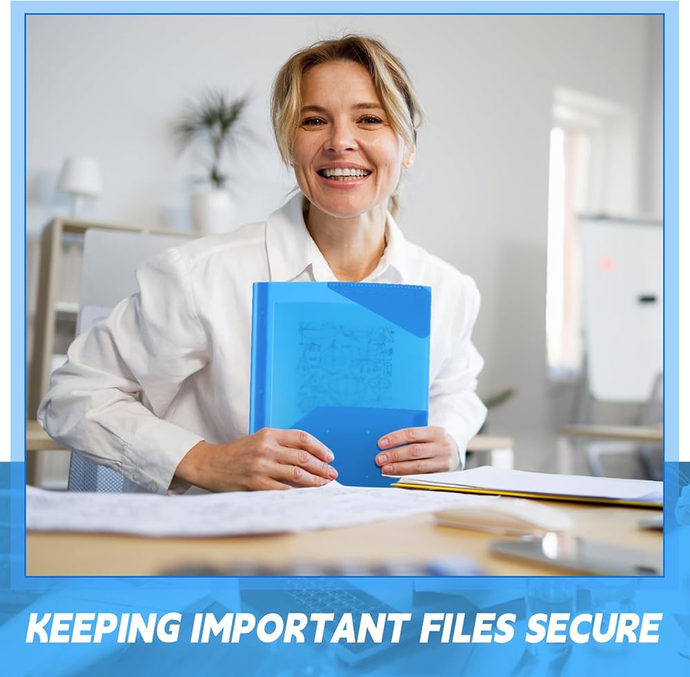 Each plastic folder with pockets is equipped with 3 prongs, enabling you to securely attach papers and preventing them from falling out or getting lost.