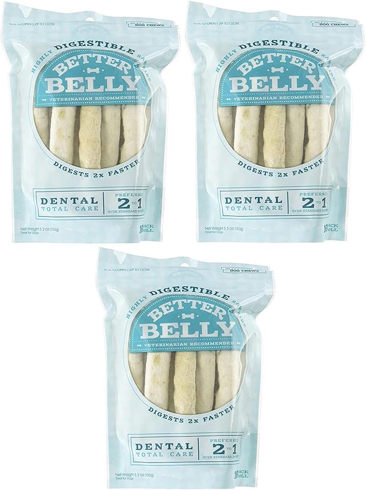 Highly digestible total dental care rawhide chews Specially processed for 2X faster digestion than traditional rawhide Veterinarian recommended No fillers, binders, or artificial colors Approximately 5"-6" long This is an offering for multi quantity bundle - 3 count