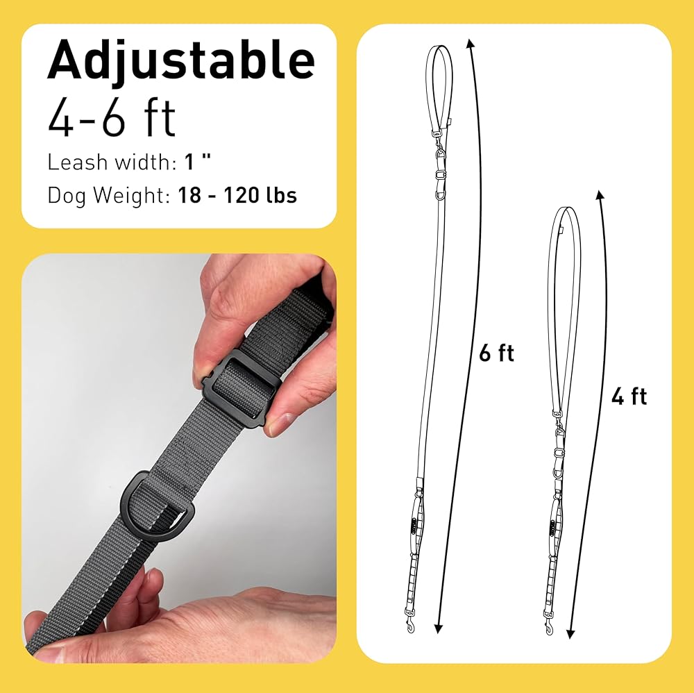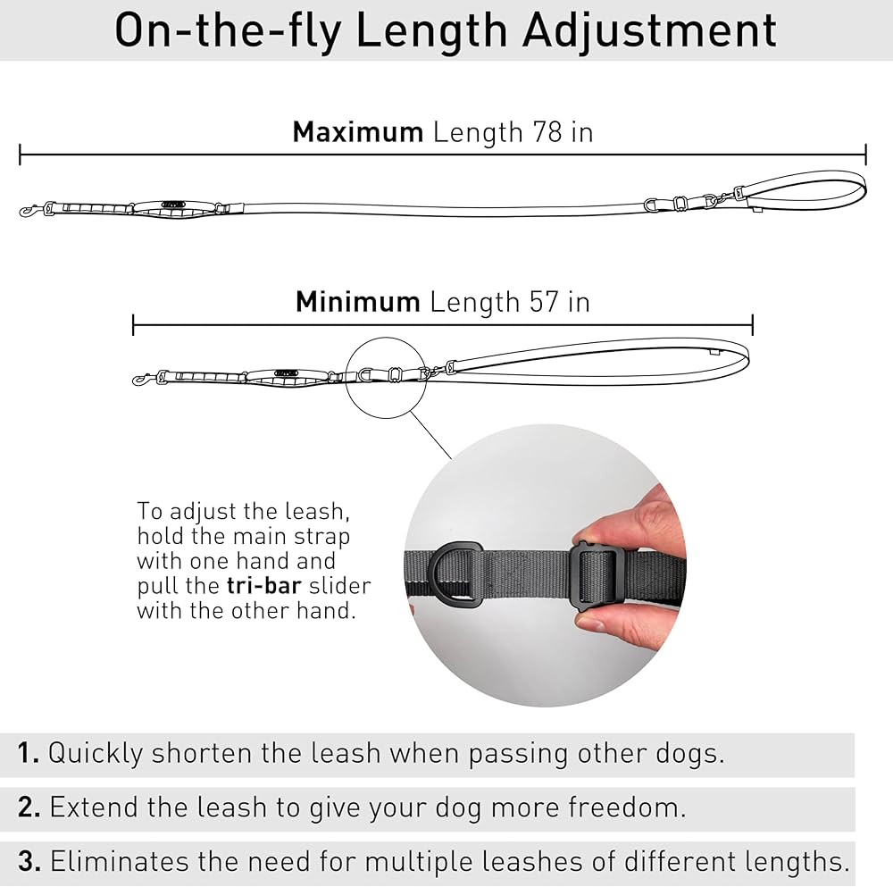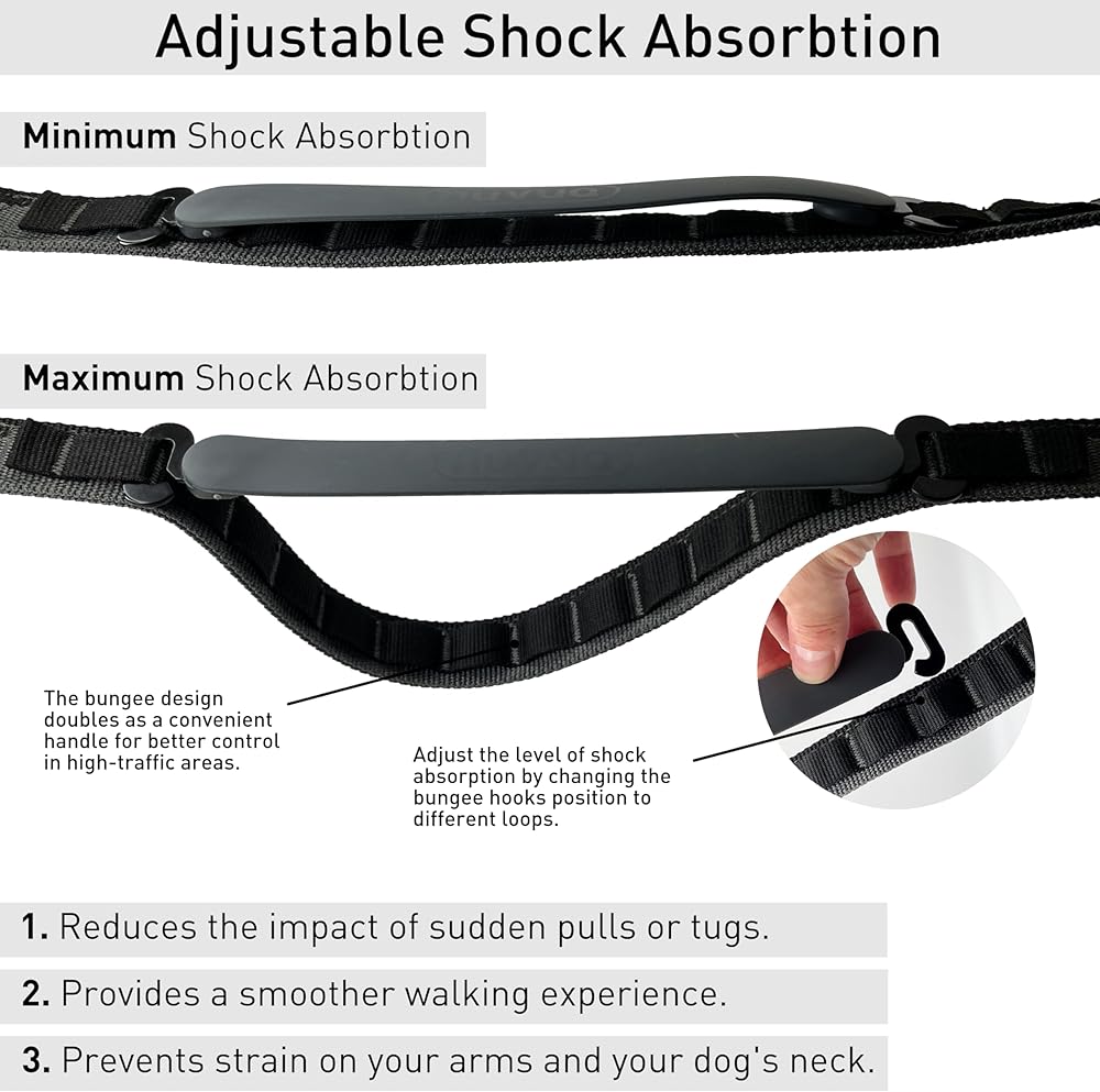 إطلاق العنان للتنوع - حافظ على التحكم الكامل في مغامراتك وتأكد من سلامة كلبك من خلال ميزة امتصاص الصدمات القابلة للتعديل. بالإضافة إلى ذلك، عندما تحتاج إلى قبضة مريحة، ما عليك سوى التبديل إلى وظيفة المقبض المبطن، مما يوفر انتقالًا سلسًا لجميع أنشطتك الخارجية.