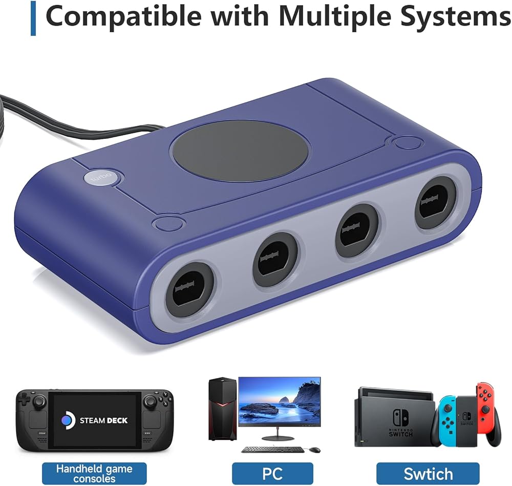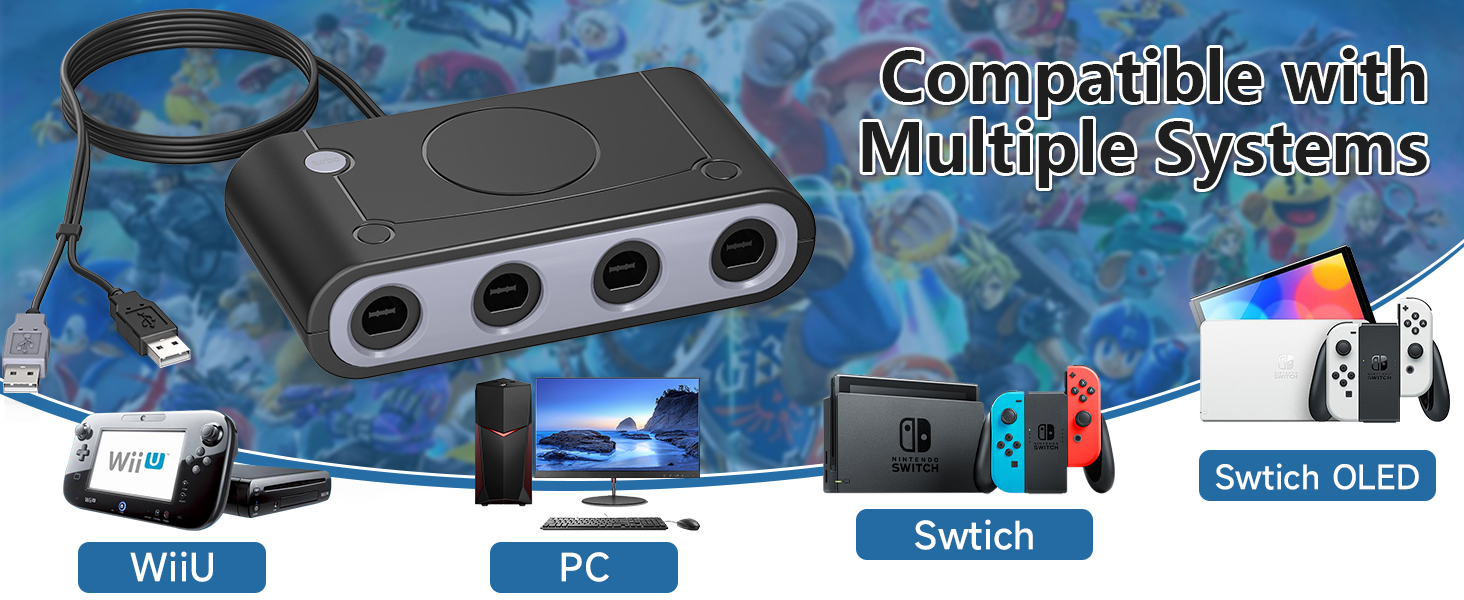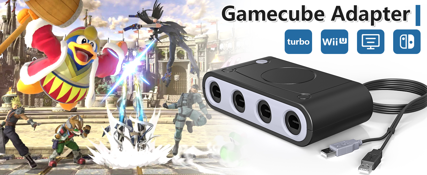 【متوافق مع منصات متعددة】: محول جيم كيوب متوافق مع نينتندو سويتش / وي يو / الكمبيوتر الشخصي والويندوز، يعمل مع وحدة تحكم نينتندو جيم كيوب، ما يصل إلى 8 لاعبين لجهاز وي يو أو سويتش (تحتاج إلى محولين). محول وحدة تحكم جيم كيوب المثالي للعب سوبر سماش بروس.