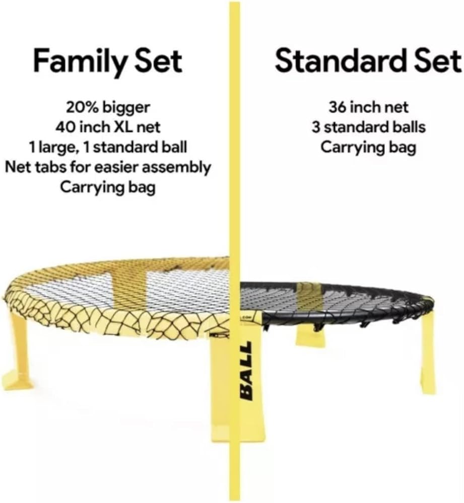Spikeball is a fun and competitive game that has been called a combination of volleyball and four square. Our Spikeball Family Set brings fun for the whole family! With the larger net and variety of balls everyone in the family can get involved! Servers “spike” the ball to the opposing team who has up to three touches to play the ball back to their opponents. Perfect for backyards, beaches, parks, tailgates. Play Anywhere! What is included: XL Net & Frame, 1 XL Ball, 1 Regular Ball, Drawstring Carrying Bag, Rule Book, and tons of family fun. AS SEEN ON SHARK TANK: A fun, active, and competitive outdoor/indoor sports game with rules similar to volleyball LARGER NET & FRAME makes it perfect for the whole family to get involved. Try 3 on 3! VARIETY OF BALLS gives you a variety of ways and levels of difficulty to play! 1 XL ball perfect for younger and newer players. 1 Regular Ball for players looking for a bit more challenge