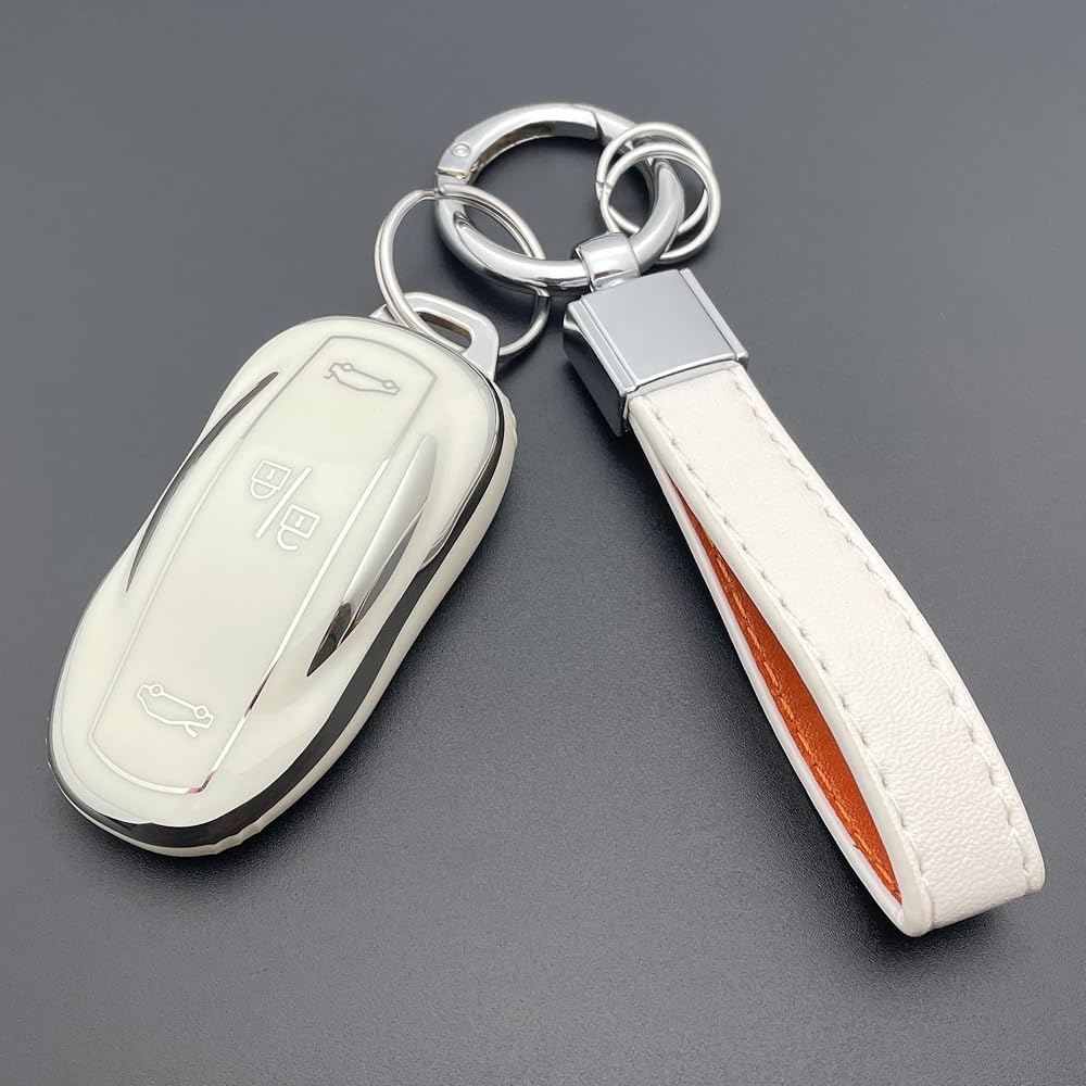 [المادة]: غطاء مفتاح Tesla مصنوع من مادة TPU المقاومة للماء، ناعم وسهل التنظيف. سلسلة المفاتيح مصنوعة من سبائك الزنك والجلد، متينة وجميلة. الخاتم مصنوع من المعدن
