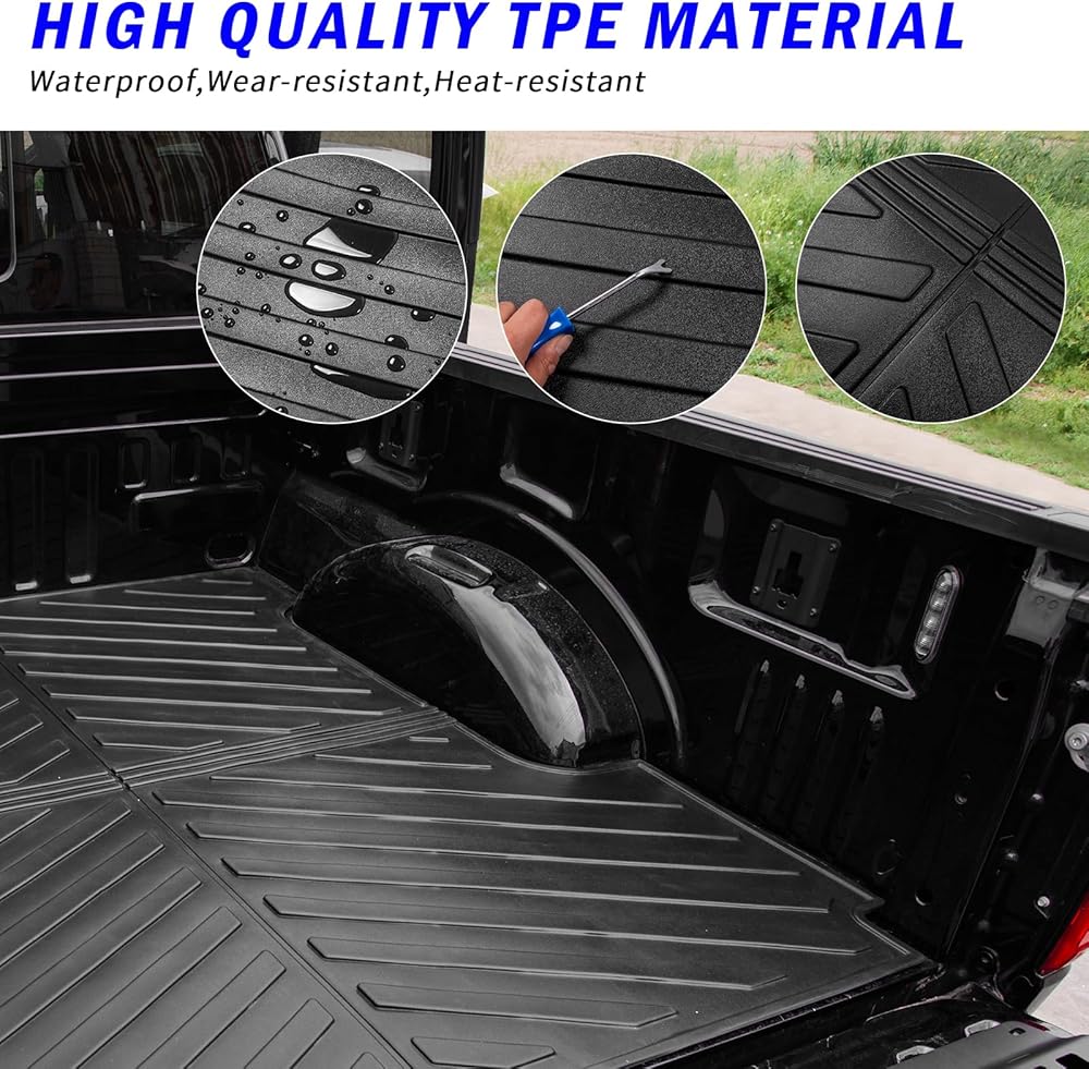 Function: The Ford F150 truck bed mat can prevent sand, mud, leakproof and impermeable, waterproof, scratch-resistant, easy to clean, available in all seasons.Reduce damage to the original car and make your car look more beautiful.