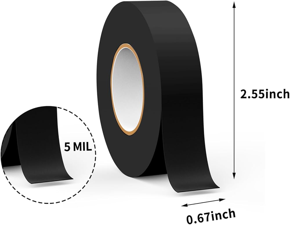 Black Electrical Tape: 10-Pack 0.67 inch 66ft professional PVC electrical tape,great for under 600V electrical insulation wire wrapping.