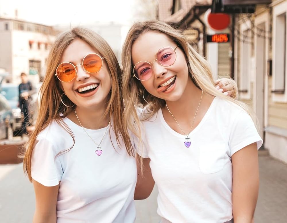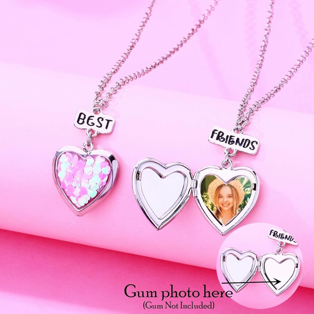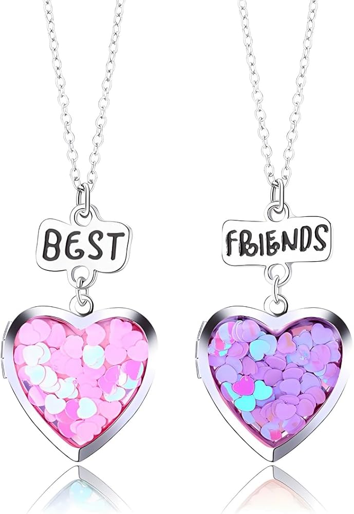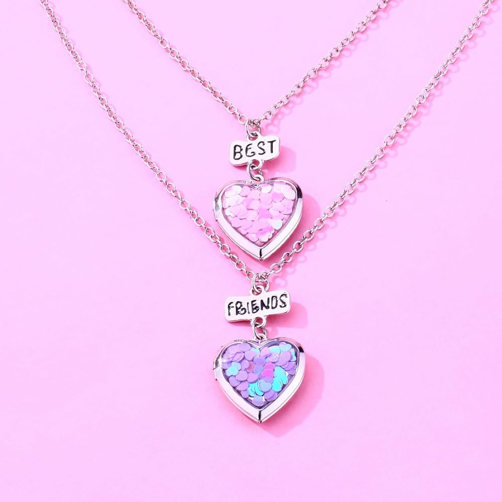 Lezmoii قلادة القلب المنجد الذي يحمل صورة الصورة داخل قلادة الصداقة أفضل هدية قلادة صديق للنساء الفتيات قلادة BFF لمدة 2