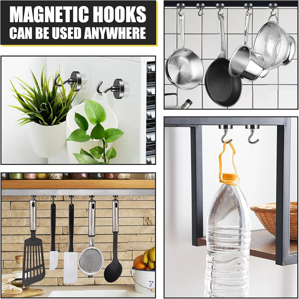 Introducing our 20 Pack Heavy Duty Magnetic Hooks, the ultimate solution for your organizational needs! Crafted with premium materials and innovative design, these magnetic hooks are engineered to deliver unmatched strength and durability. Each hook is meticulously constructed with high-quality neodymium magnets, ensuring a powerful hold that can support substantial weight. With a heavy-duty design, these hooks are capable of securely holding a variety of items, from keys and tools to kitchen utensils and decorations. Featuring a sleek and compact design, our magnetic hooks blend seamlessly into any environment, whether it's your home, office, garage, or workshop. The versatile design allows you to effortlessly organize your space and maximize storage efficiency. Installation is quick and hassle-free – simply attach the hooks to any magnetic surface, such as refrigerators, metal cabinets, or steel doors, and instantly create a convenient storage solution. Plus, the smooth surface and rounded edges prevent scratches or damage to your belongings. Experience the convenience and reliability of our 20 Pack Heavy Duty Magnetic Hooks. Whether you're decluttering your space or need a reliable storage solution, these hooks are the perfect choice for any organization project. Unlock the potential of your space and simplify your life with our premium magnetic hooks!