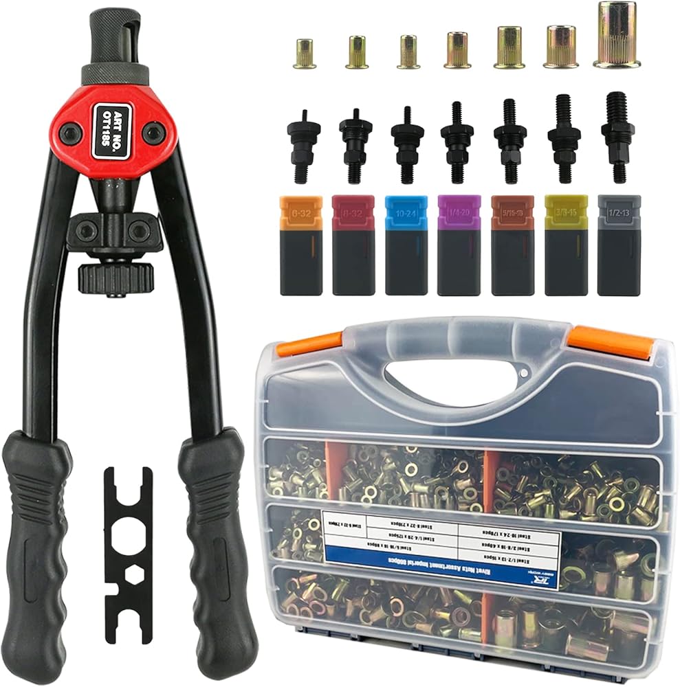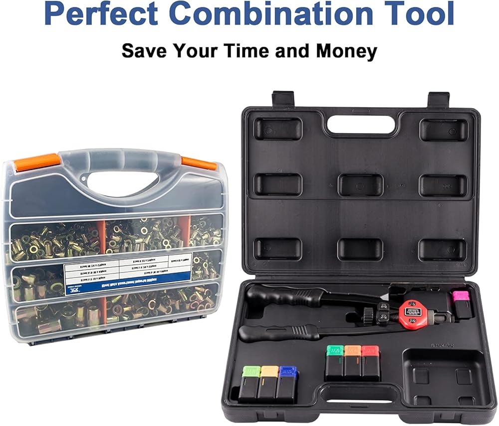 • 【قوية ومتينة】 أداة صامولة التثبيت مصنوعة من الفولاذ الكربوني السميك مع لمسة نهائية معالجة بالحرارة والتي تحمي من التآكل وتمنح هذه الأداة المزيد من المتانة والقوة. تتضمن مجموعة صواميل التثبيت 860 قطعة من صواميل التثبيت الفولاذية، مما يوفر متانة ممتازة وقوة عالية ومقاومة للتآكل.