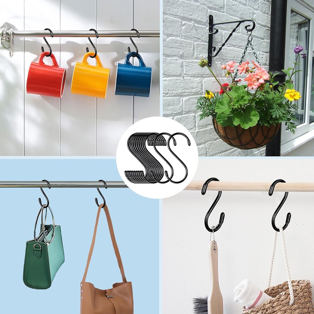 • استخدامات متعددة: هذه الخطافات على شكل حرف S رائعة لتعليق ملابسك ونباتاتك ومحفظتك والجينز والأوشحة والقبعات والأحزمة والمجوهرات والمزيد. بالإضافة إلى ذلك، فإن خطافات التعليق هذه مناسبة أيضًا للخزانات وغرف التخزين والحمامات والجراجات وورش العمل والمكاتب، أو لتعليق سلال النباتات وأجراس الرياح والفوانيس في الهواء الطلق.
