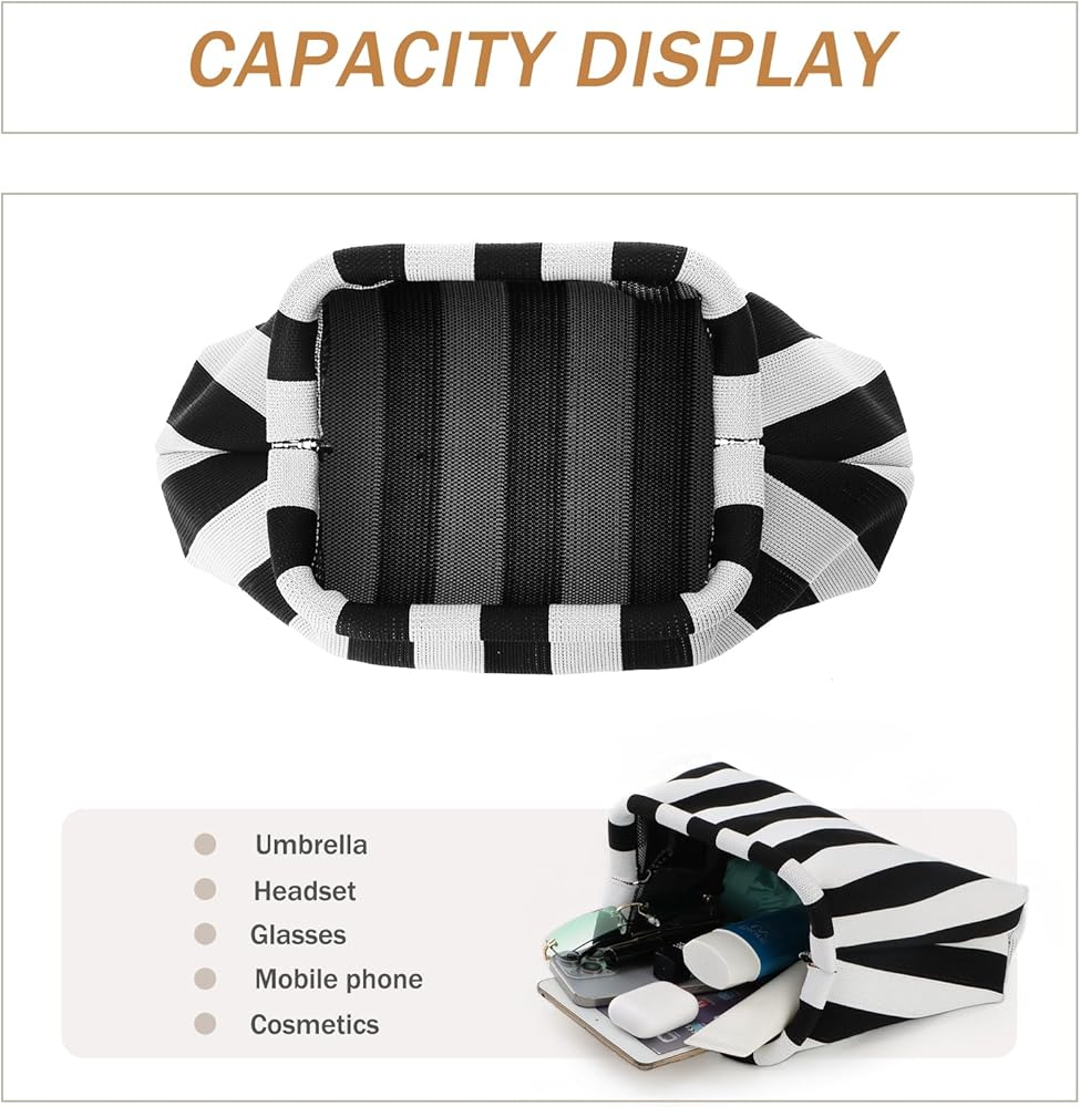【مادة كروشيه عالية الجودة】هذه القابض مصنوعة من مادة كروشيه عالية الجودة، وخفيفة الوزن ومقاومة. تتميز حقيبة الشاطئ بتصميم فريد وأنيق وسطح منسوج مقلم مع جيب واحد فقط.