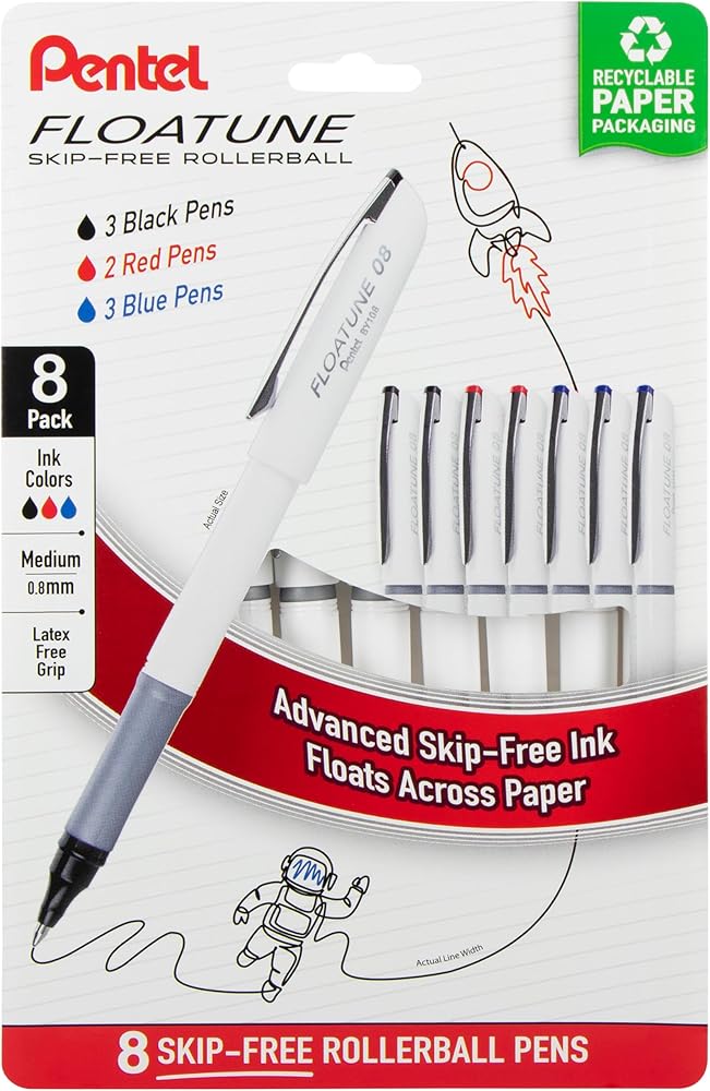 The latest evolution of rollerball ink enables your ideas to float down the stream of imagination. Floatune's water based, oil infused ink formula writes smoothly and won't skip. The dual ball mechanism inside of the pen tip allows for maximum ink flow. Experience less friction when you write. An all-matte white body provides a clean and sophisticated look to match a high-quality minimalist aesthetic.