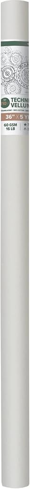 Borden And Riley #110M Technical Vellum Pad, 36" x 5 Yards Per Roll, 16 lb. 100% Rag, is made of 16 lb. , bright white, pH neutral, 100% rag long fiber paper. It is transparent zed during manufacture for exceptional dimensional stability and accuracy. This paper contains no fugitive oils or resins and is crack resistant, durable and archival. Made in USA.