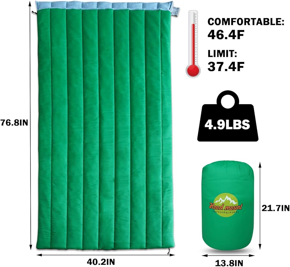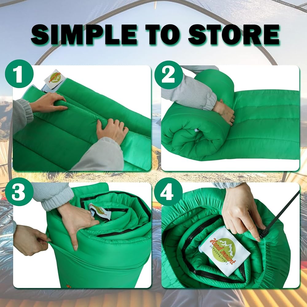 Portability and Maintenance: Lightweight and easy to carry with compression sacks, these sleeping bags are also machine washable, ensuring they're convenient for regular outdoor use and easy to clean.