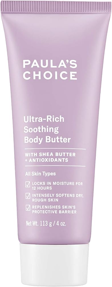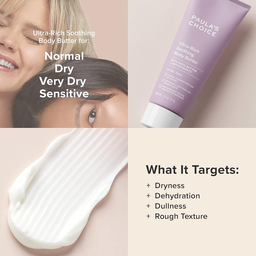 زبدة الجسم الملطفة الغنية للغاية بفيتامين C وE وزبدة الشيا والسكوالين للبشرة الحساسة والجافة، 4 اونصة من باولاس كلينيكال