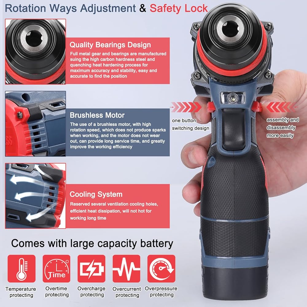 👍[محرك بدون فرش]: استخدام محرك بدون فرش، مع سرعة دوران عالية، لا ينتج شرارة عند العمل، ولا يبلى المحرك، يمكن أن يوفر وقت خدمة طويل، ويحسن كفاءة العمل بشكل كبير.