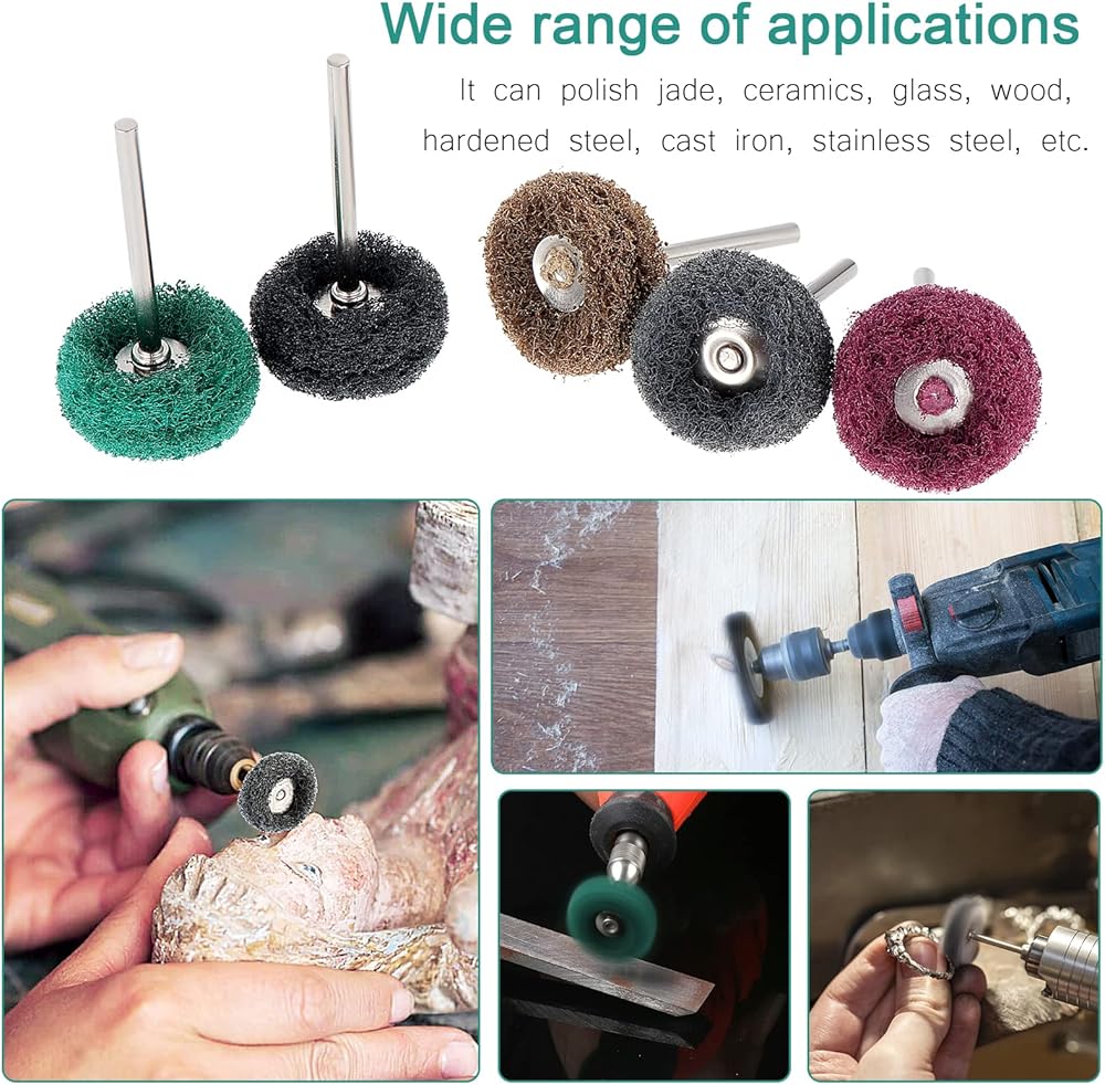 The buff wheels can be used with a tool, fit for rotary tools grinder etc. Accessories for fine detail work on jade, ceramic, glass, wood, hardened steel, cast iron, stainless steel