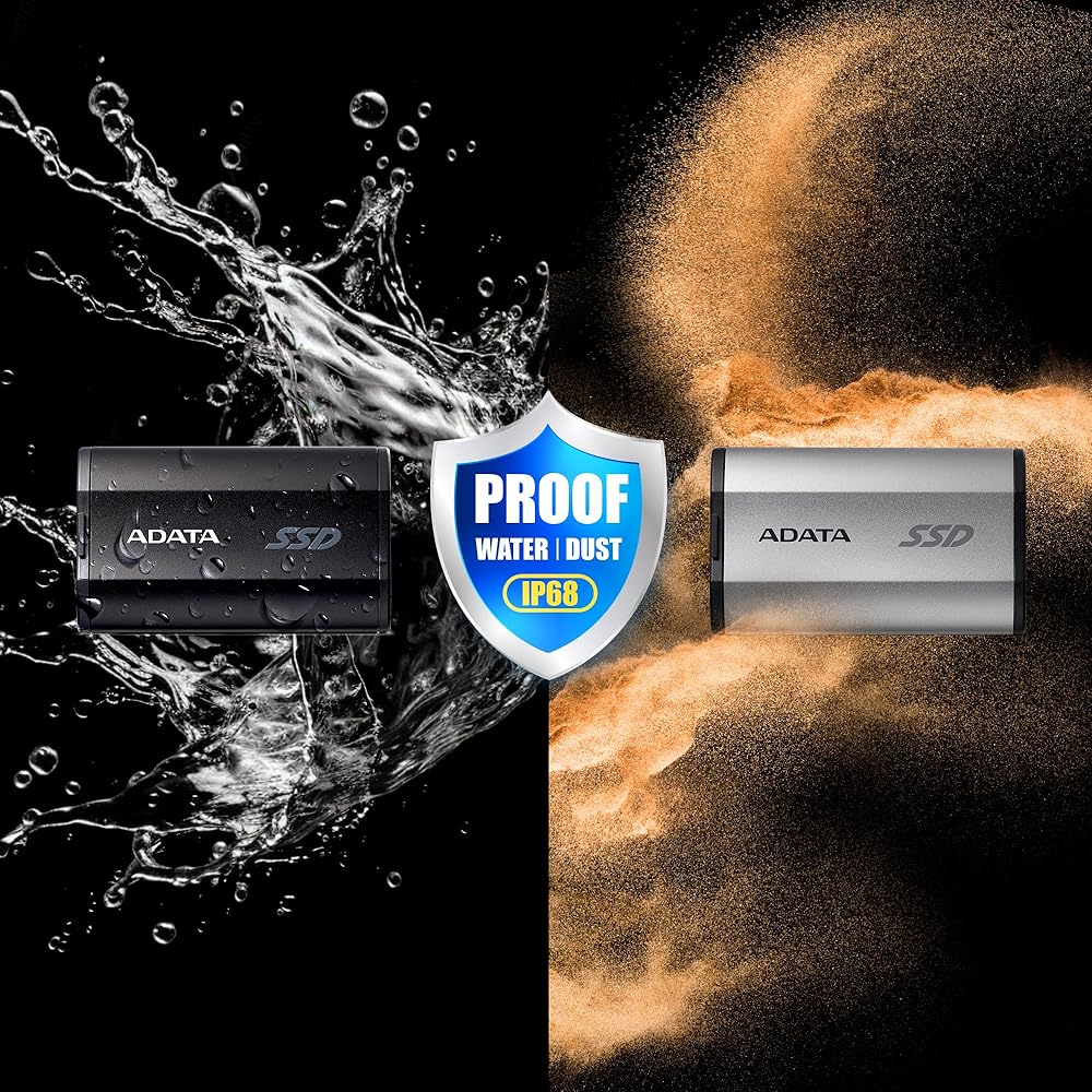 محرك أقراص الحالة الصلبة الخارجي المحمول ADATA SD810 1000G - ما يصل إلى 2000 ميجابايت/ثانية، USB 3.2 Gen 2x2، USB-C، مقاومة للماء IP68، تخزين موثوق للألعاب والطلاب والمهنيين