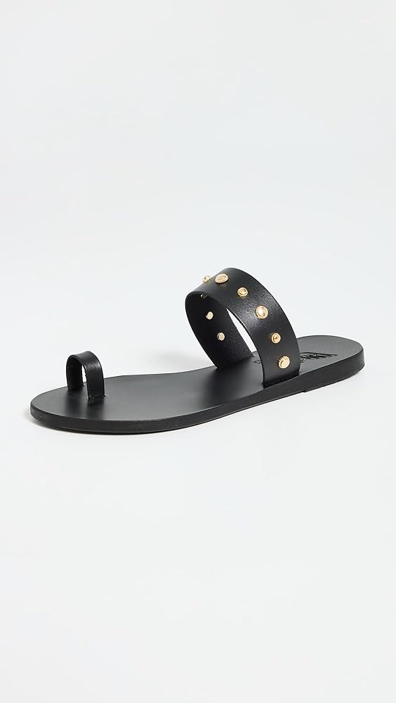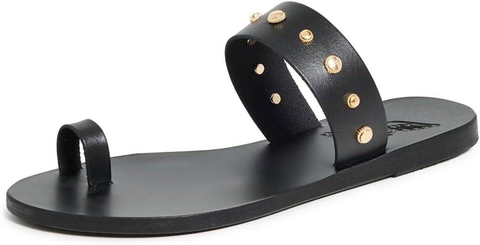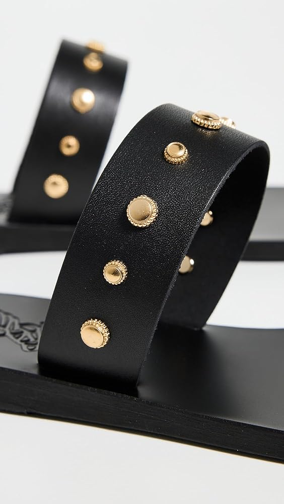 - Gold-tone hardware , Toe strap , Leather footbed
