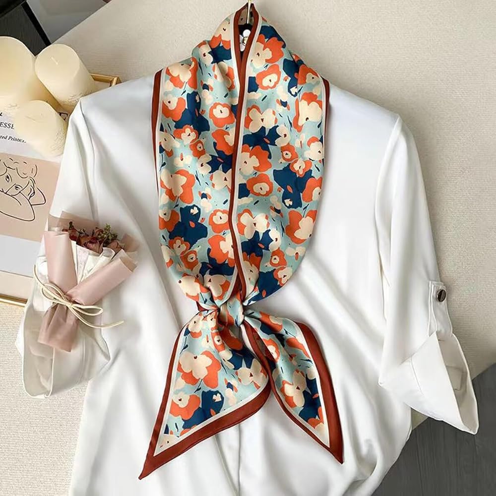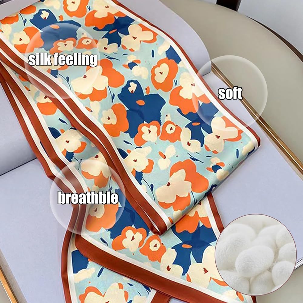 وشاح شعر طويل من Do-Dottii مقاس 59 بوصة للنساء، وشاح رأس من الساتان الحريري الأنيق للنساء، أوشحة رقبة حريرية خفيفة الوزن، إكسسوارات حقائب اليد - زهور متعددة الألوان
