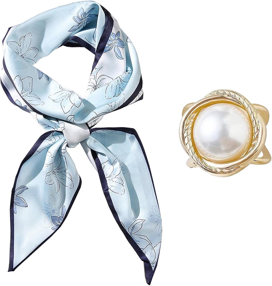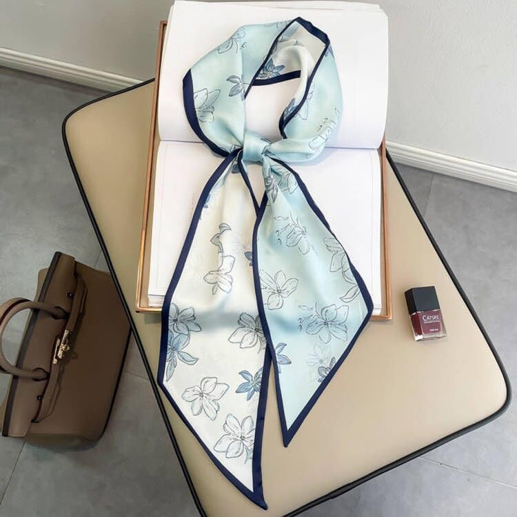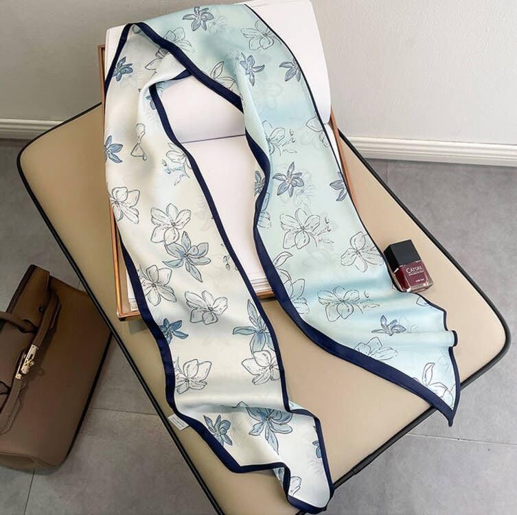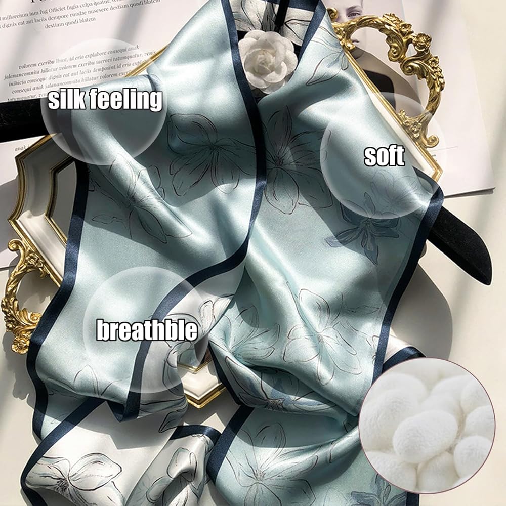 وشاح شعر طويل من Do-Dottii مقاس 59 بوصة للنساء، وشاح رأس من الساتان الحريري الأنيق للسيدات، أوشحة رقبة حريرية خفيفة الوزن، إكسسوارات حقائب اليد - زهور زرقاء شاحبة
