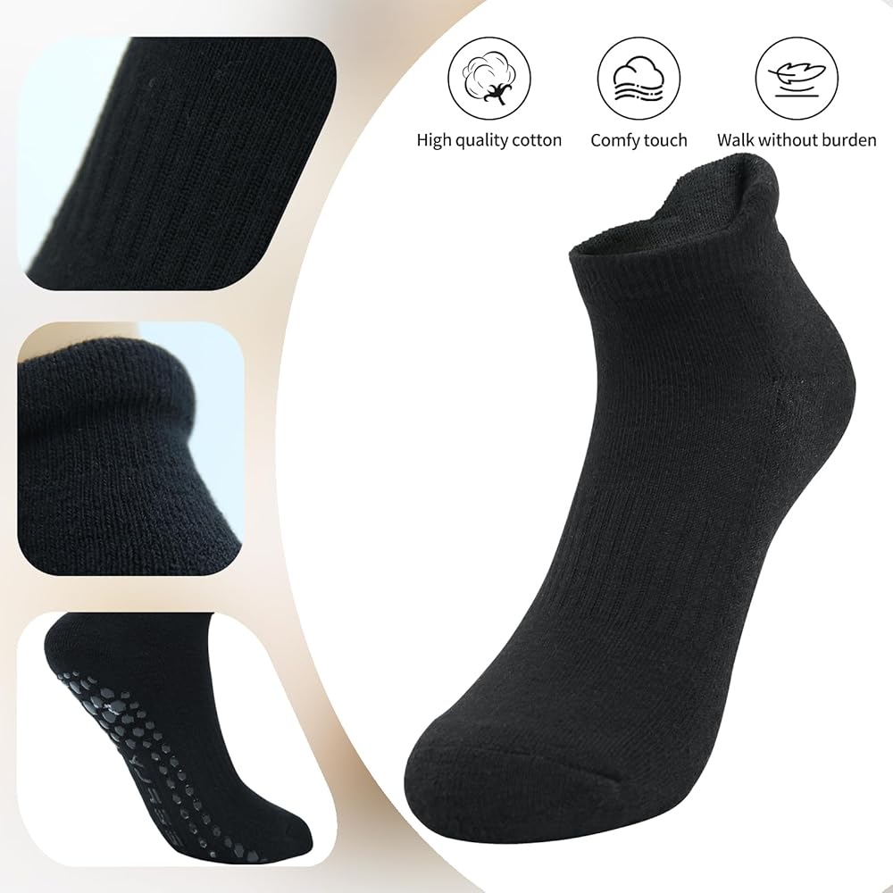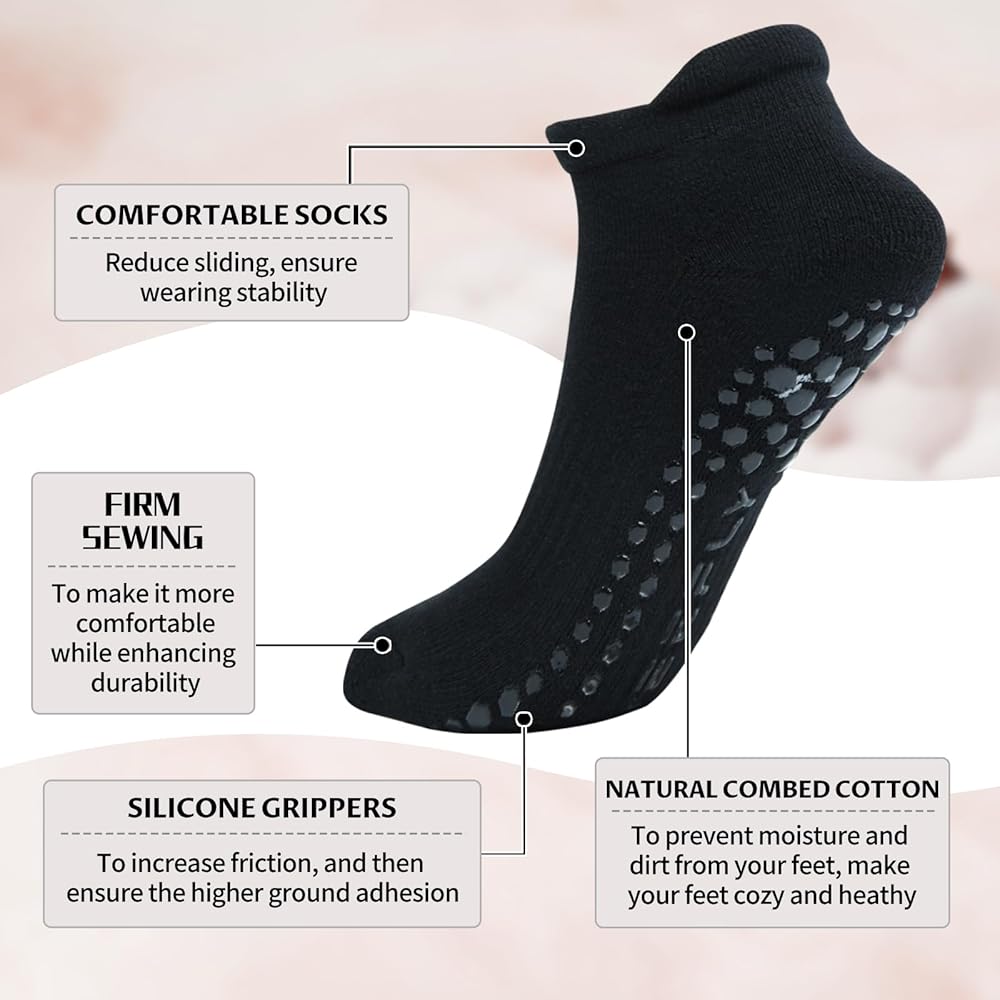 ثبات معزز: تم تصميم جوارب اليوجا المضادة للانزلاق لزيادة التوازن والثبات أثناء اليوجا والبيلاتيس والباليه وغيرها من الأنشطة. يوفر النعل المضاد للانزلاق الثبات، ويمنع الحوادث على الأرضيات الزلقة.