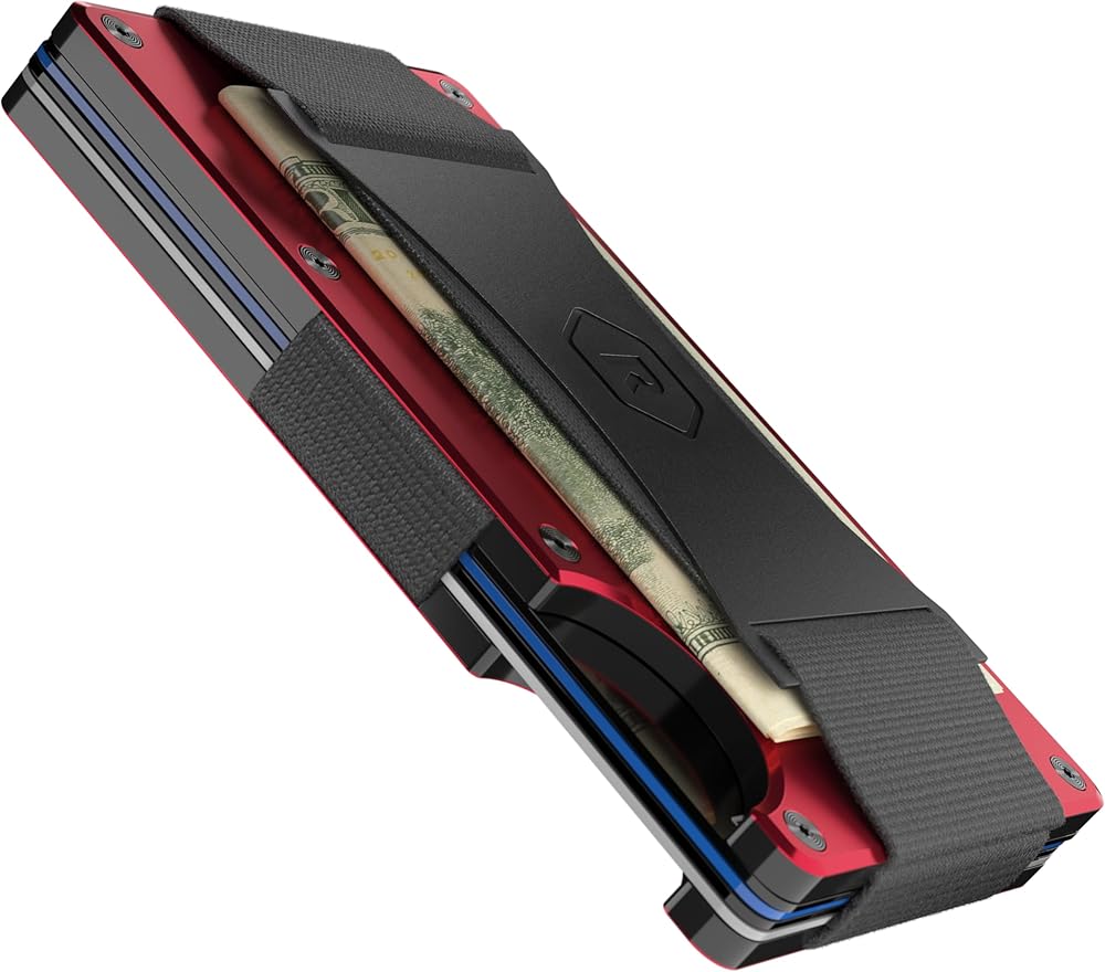 مجموعة Ridge EDC Bundle محفظة بحزام للنقود باللون الأحمر للرجال + مجموعة حافظة Airtag - محفظة آمنة وأنيقة ومحمية بتقنية RFID مع حامل بطاقة هوائية وحزام للنقود
