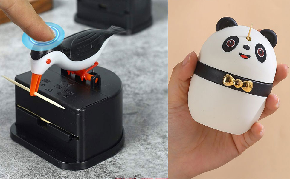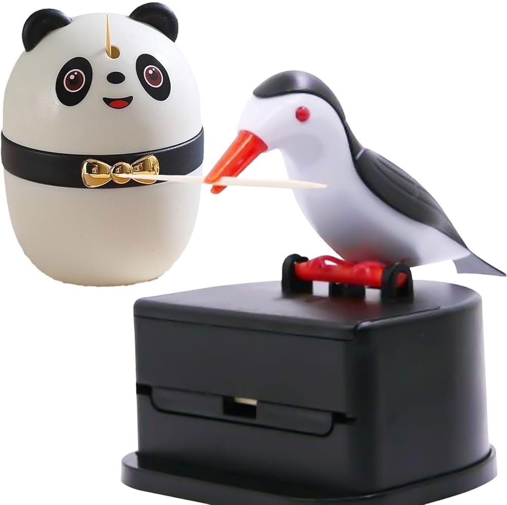 صندوق أعواد أسنان لطيف وممتع للمطبخ على شكل باندا على شكل طائر، حامل أعواد أسنان أوتوماتيكي جديد، مجموعة موزع أعواد أسنان على شكل طائر + لطيف للغاية من نوع ضغط الباندا، صندوق أعواد أسنان للتخزين بمادة ABS