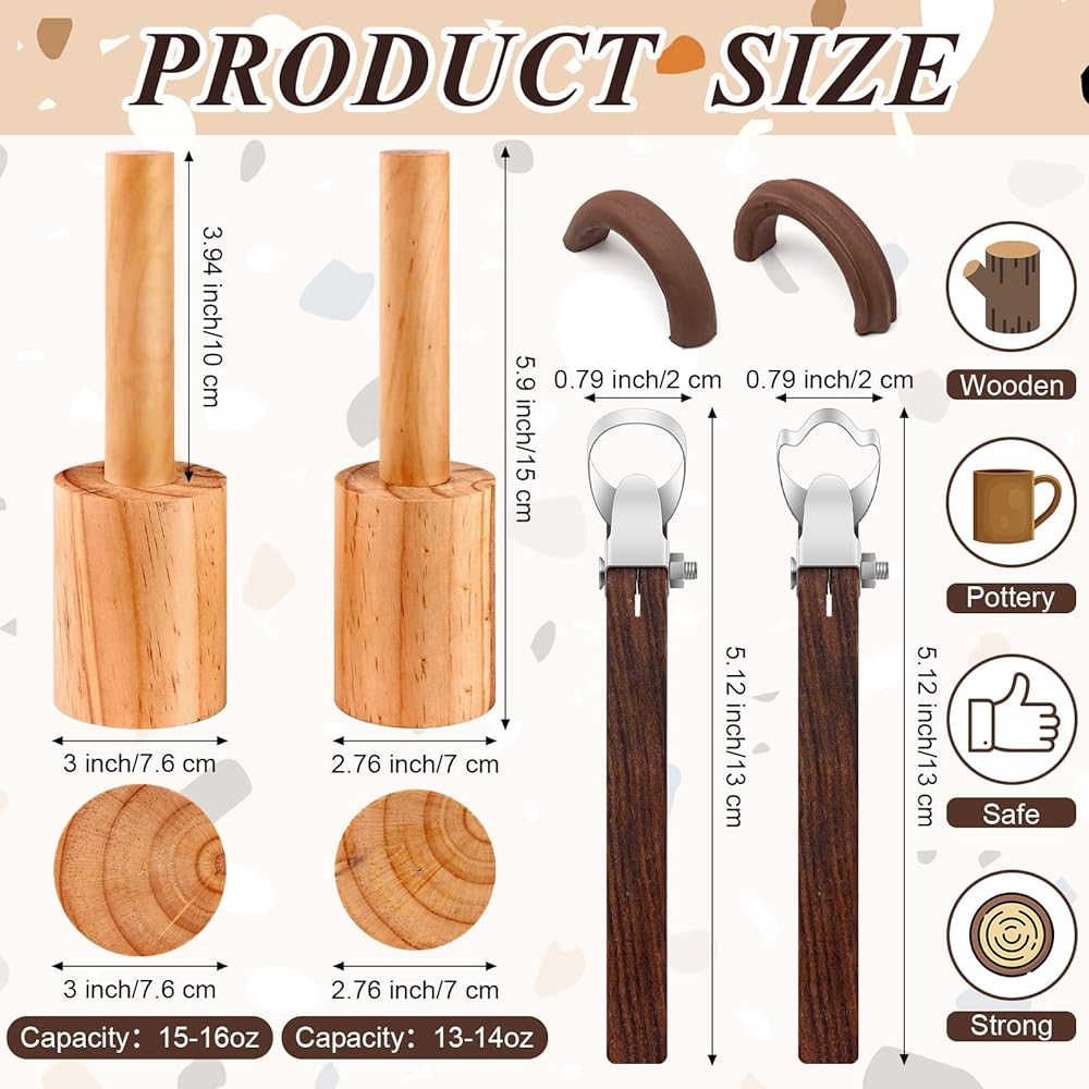Ceramic Cup Mold Kit--Package includes 2 pcs ceramic cup molds + 2 pcs handle making tools with textured blades.This pottery tool set is simple and practical to meet your creative desires or replacement needs for clay arts and crafts.