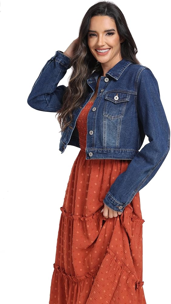 تعتبر سترة الدنيم القصيرة النسائية قطعة أساسية لا بد من اقتنائها، فهي تجمع بسهولة بين الطراز الكلاسيكي والراحة العصرية. ستكون سترة الدنيم هذه إضافة أساسية لخزانة ملابسك.