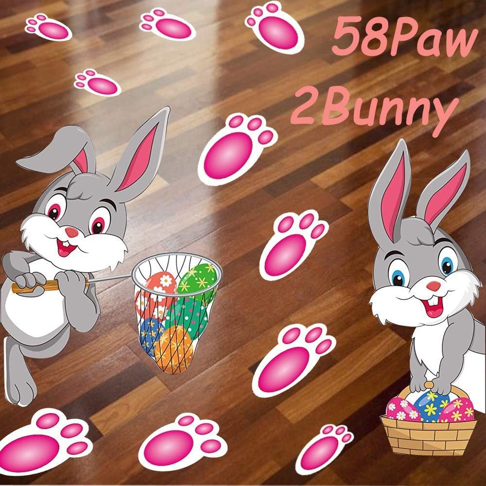 • 🐇العبوة: سوف تحصل على 58 قطعة من ملصقات طباعة مخالب الأرنب وقطعتين من ملصقات الأرنب، إجمالي 60 قطعة سوف تحصل عليها، ستقود مسارات البصمة اللطيفة هذه الأطفال إلى سلال عيد الفصح أو الهدايا الصغيرة أو البيض.