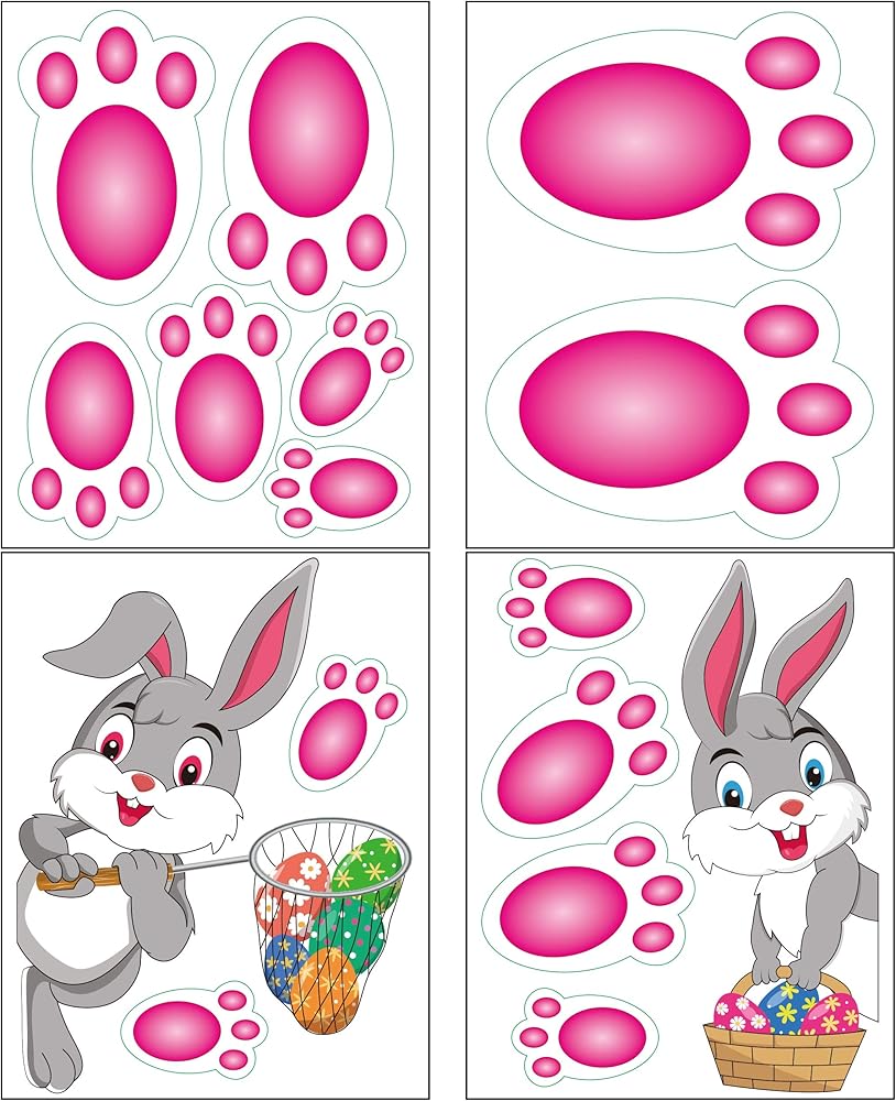 FINGOOO 60 قطعة من ملصقات بصمة أرنب عيد الفصح ملصق مطبوع عليه مخالب الأرنب للعبة صيد البيض وتزيين عيد الفصح
