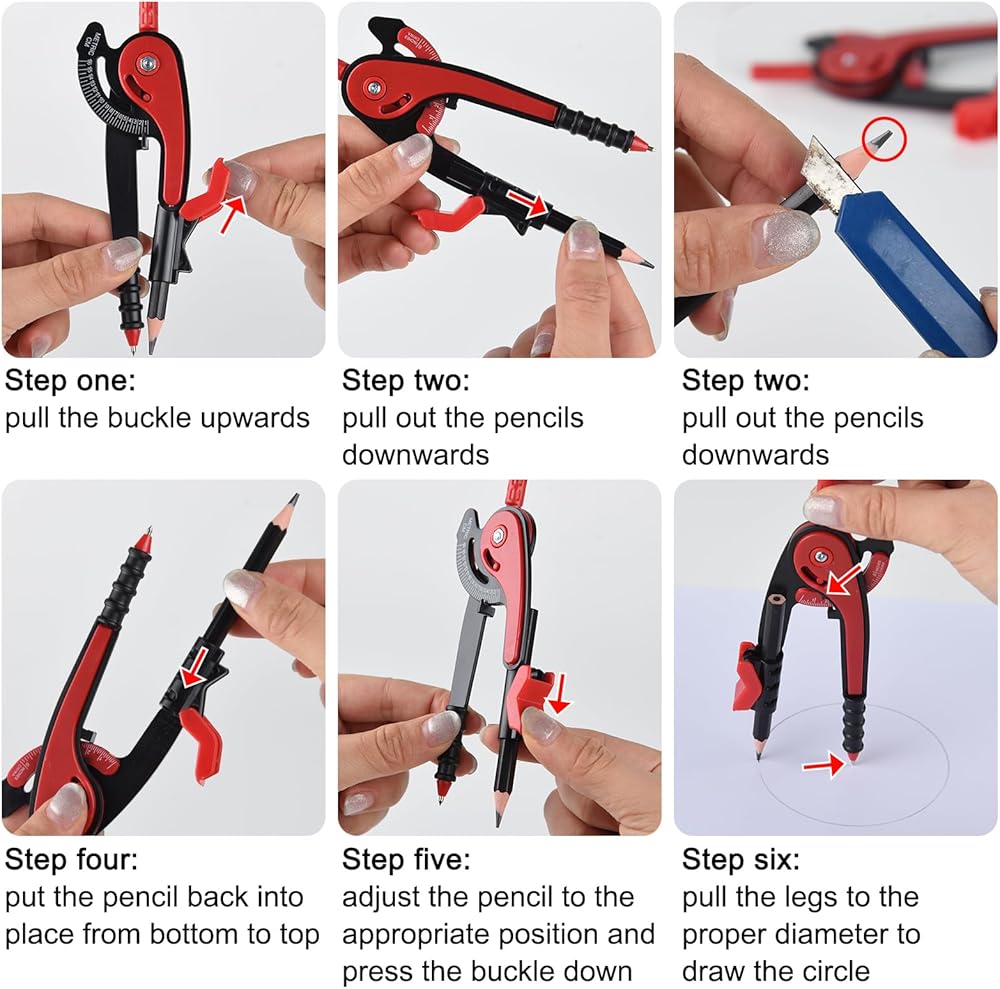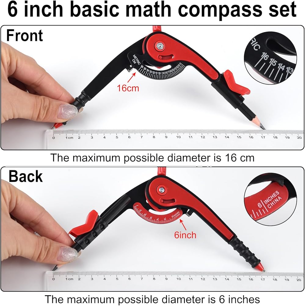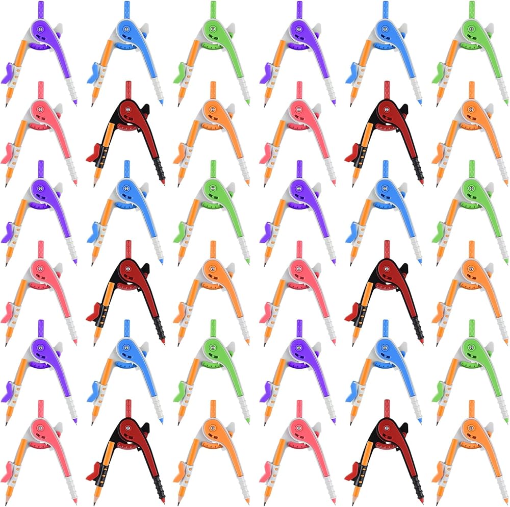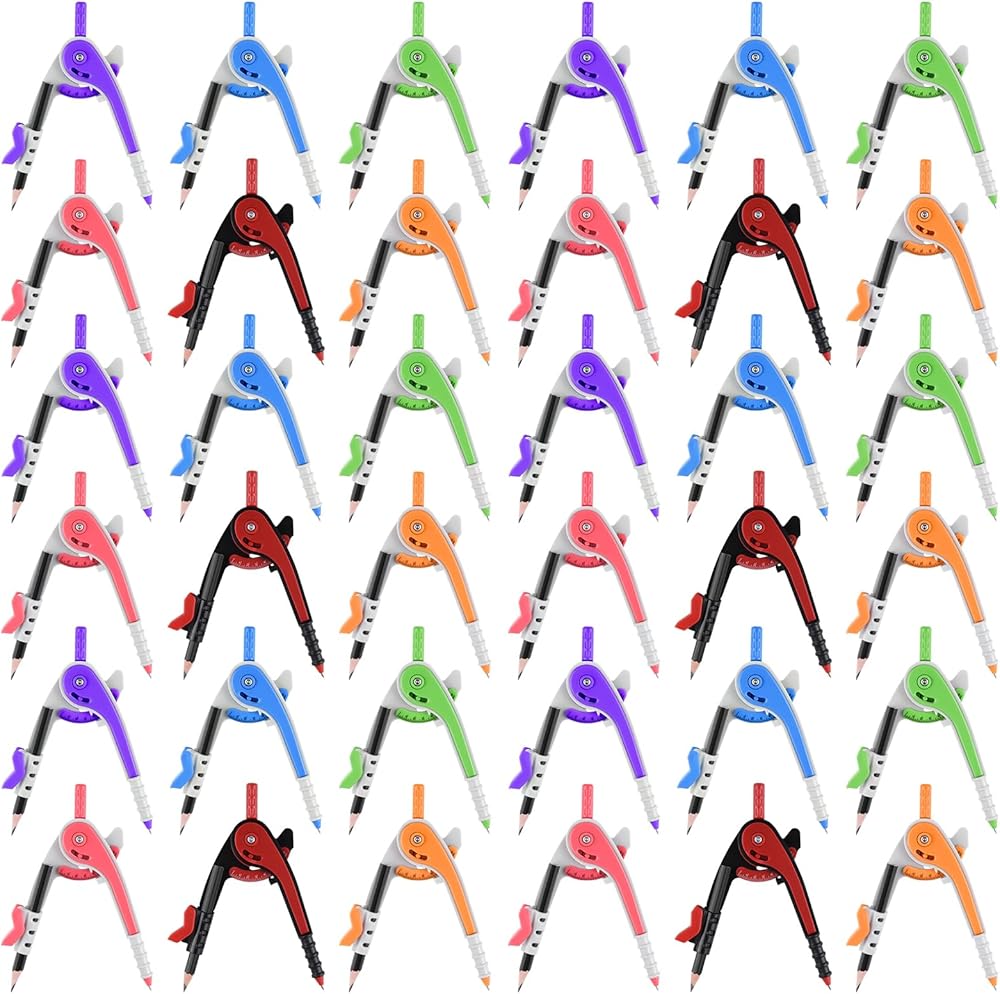 36 عبوة من بوصلة الهندسة الرياضية مقاس 6 بوصة، أداة دقيقة أساسية ملونة للطلاب، بوصلة رسم منبه بمقياس بلاستيكي مع أقلام رصاص لصياغة اللوازم المدرسية والمنزلية والمكتبية (36)