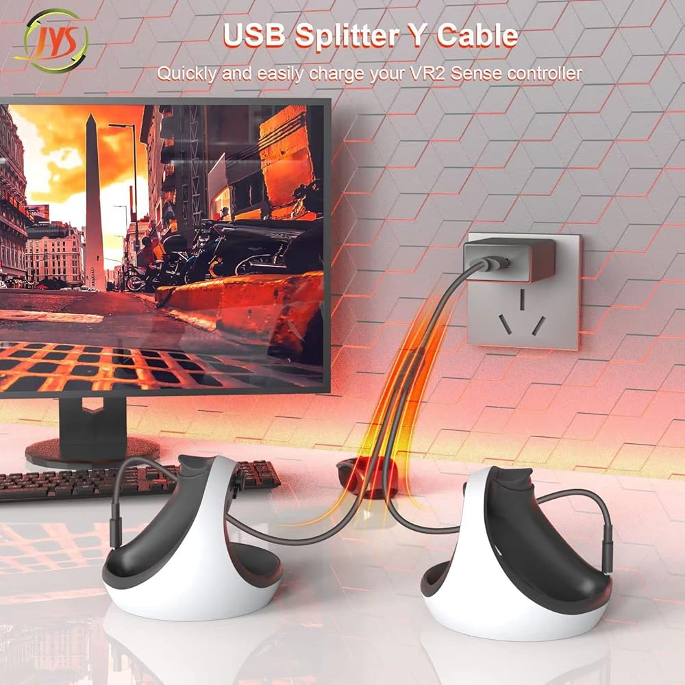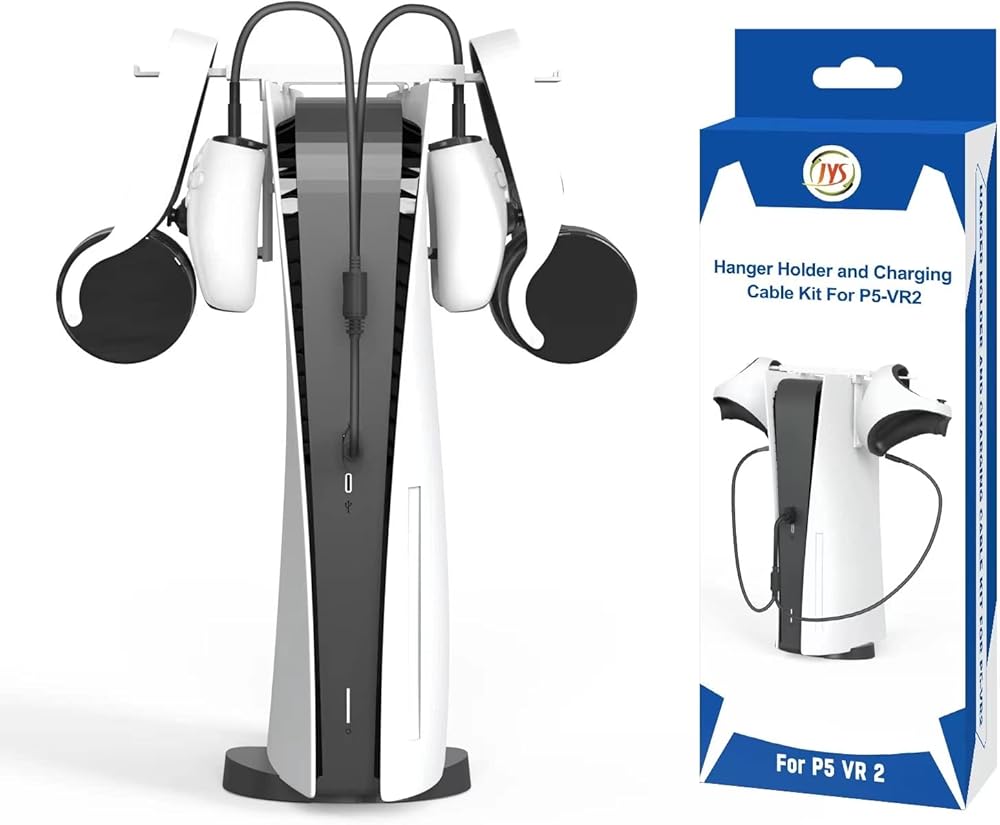 A great accessory for keeping your PS VR2 controllers organized. Our hanger is easy to install and provides a secure and convenient place to store your controllers when not in use. If you stand your PS5 system vertically and are looking to mount your PSVR2 controllers accordingly, this makes for a great solution. It sets up in seconds and really matches the controllers of PS5 console and PS VR2. The charging cable for PS VR2 controllers is perfect.