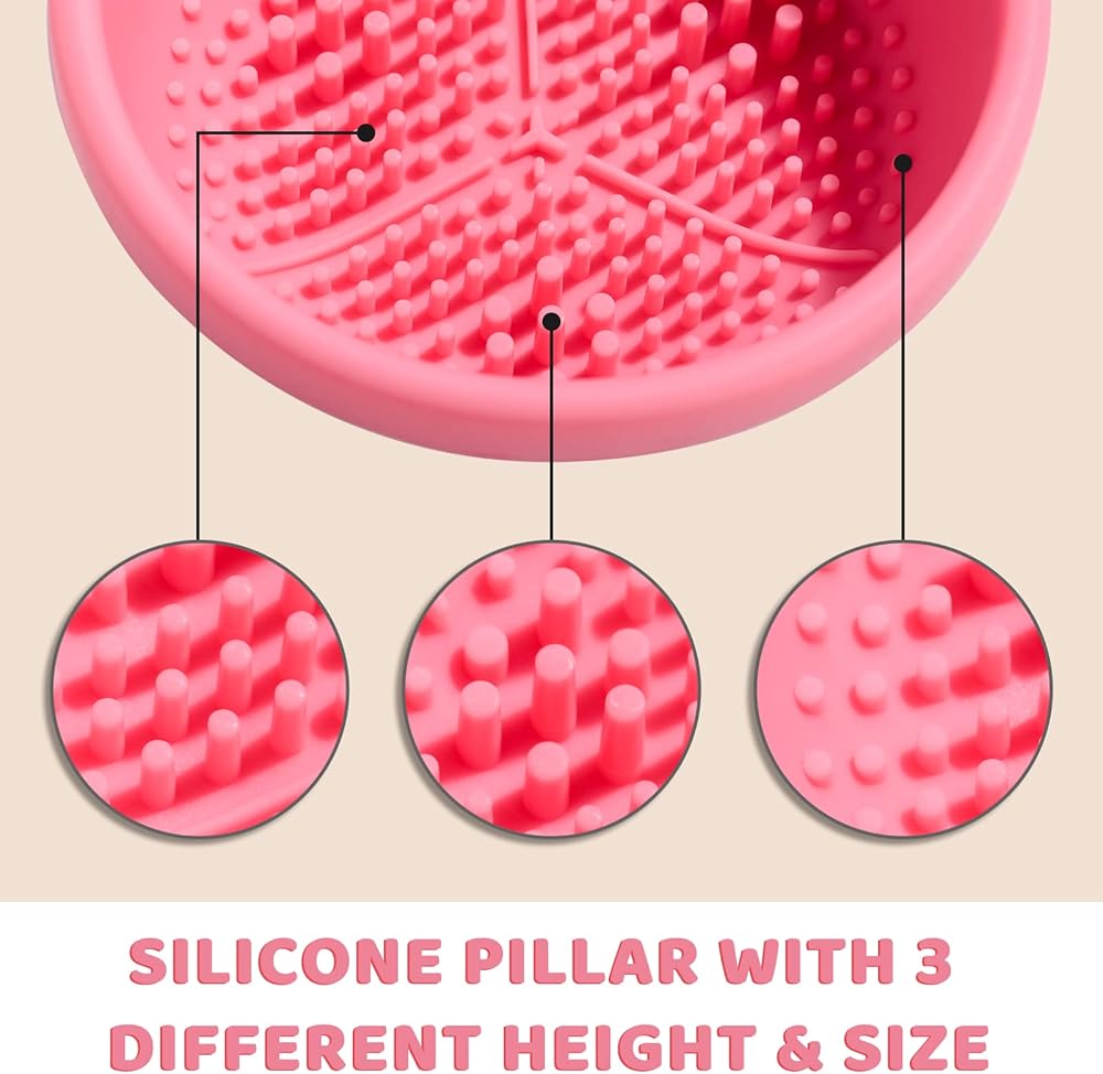 【وفر الوقت والماء وآمن】لا داعي للقلق من امتلاك الكثير من فرش المكياج وإضاعة الوقت في تنظيف الفرش واحدة تلو الأخرى. وعاء التنظيف الكبير مقاس 3.5 انش يناسب فرش المكياج بجميع الأحجام ويدعمك في تنظيف العديد من الفرش الصغيرة الحجم في نفس الوقت. امسك الفرش يدويًا بحرية واضبط الزاوية للتنظيف العميق دون إتلاف شكل الفرش ونعومتها.