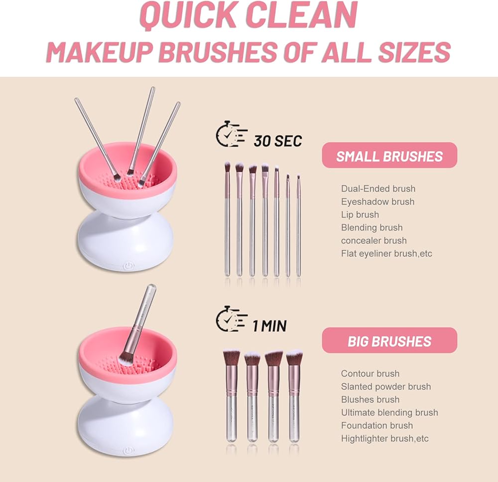 【هدية مثالية وكفالة】أفضل هدايا مكياج عيد الحب للصديقة والابنة والأم وفناني المكياج والأصدقاء. آلة تنظيف فرش المكياج الكهربائية تنظف الفرش للحصول على أداء أفضل لوضع المكياج. ضمان لمدة عام ولا تتردد في الاتصال بنا إذا كانت لديك أي أسئلة.