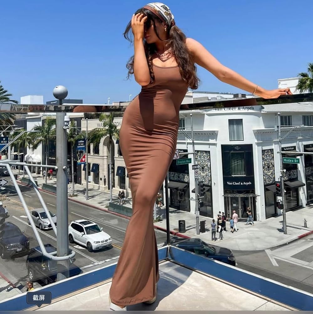 【تصميم فستان طويل مثير】: فساتين صيفية ضيقة للنساء، فستان طويل بحزام سباغيتي. الصورة الظلية تنحني خط جسمك وتظهر جاذبيتك.